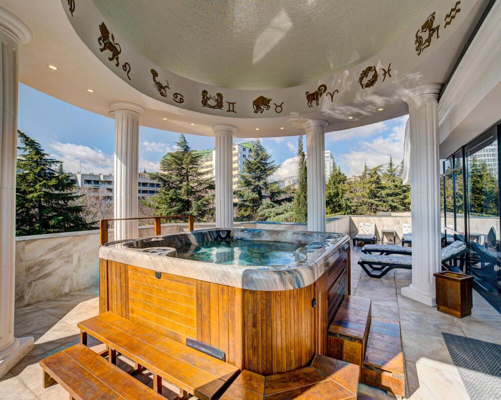 В стоимость комнат входит посещение SPA-центра с уютным хамамом и панорамной сауной, из которой гости могут любоваться красотами парка и моря. Современный канадский гидромассажный бассейн принесёт гостям позитивные эмоции в любое время года.