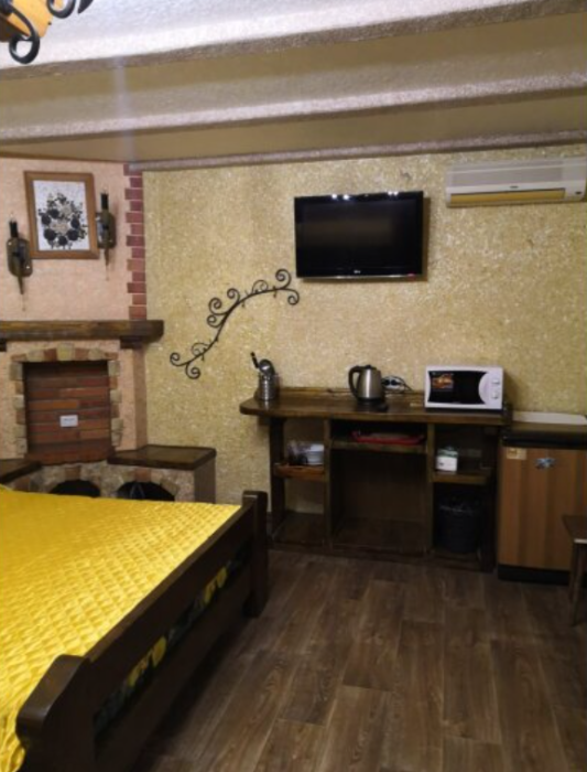 В номерах имеется все необходимое для комфортного проживания (кондиционер, телевизор, холодильник, чайник и т. д. ) в комплектациях, зависящих от потребностей гостей.
