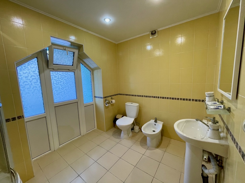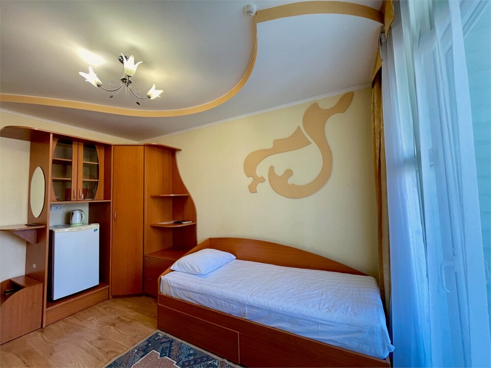 В номере имеются все удобства, установлена односпальная кровать. Небольшой балкон с видом на речку.