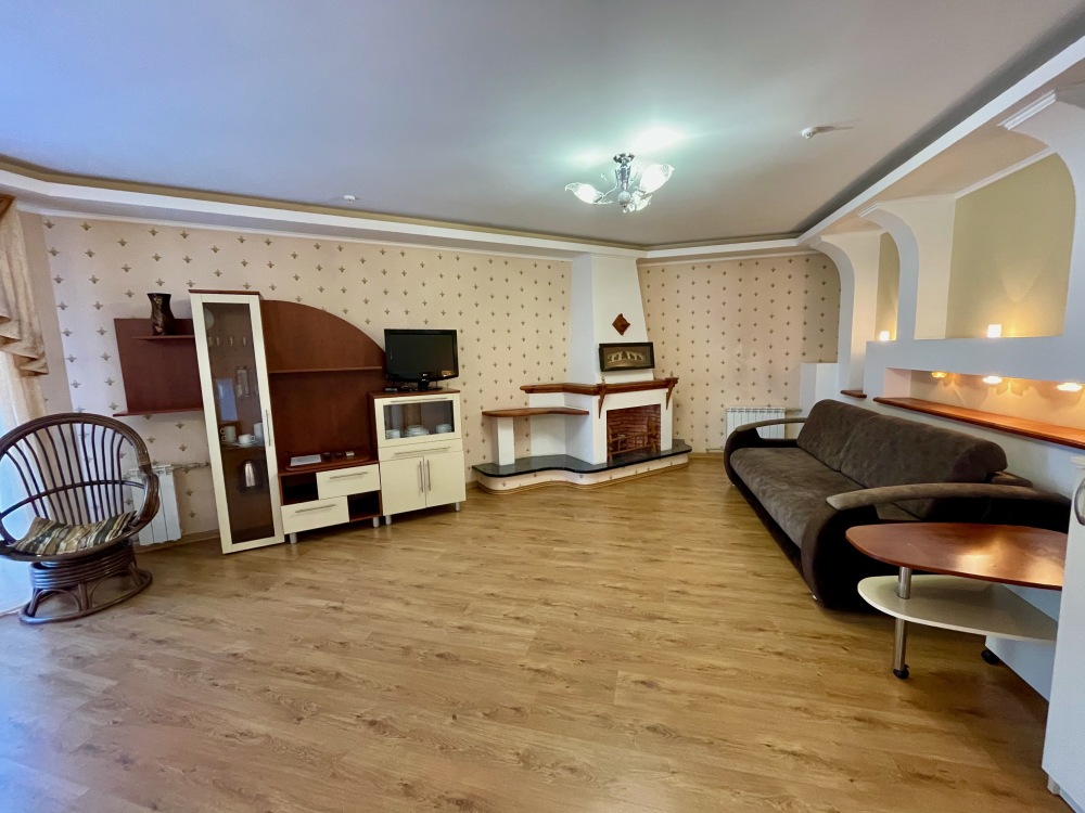 Шикарный двухкомнатный номер с кухней, камином и сауной. Имеет отдельный вход и расположен на 2-м этаже.