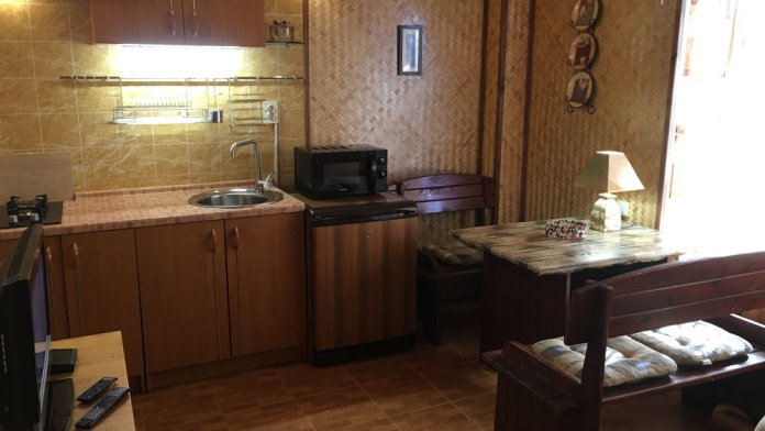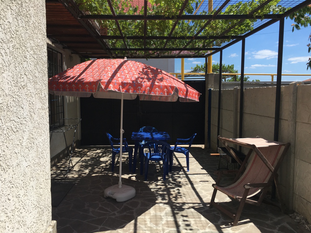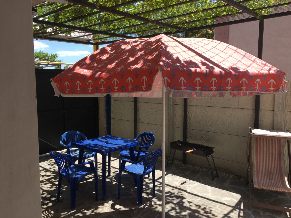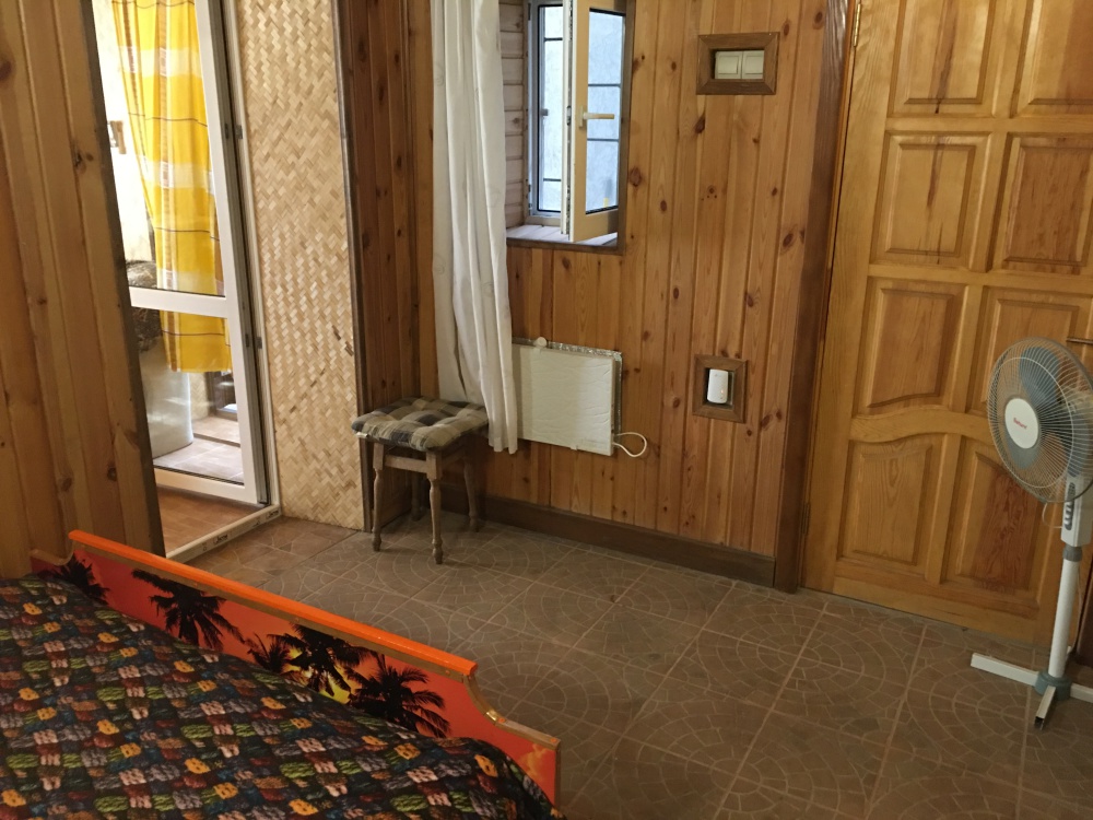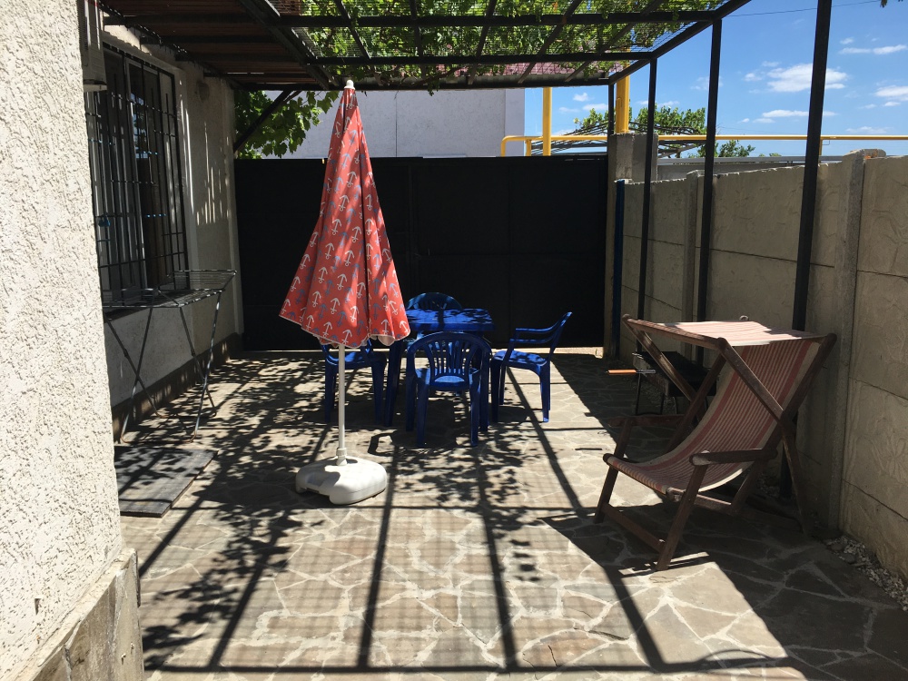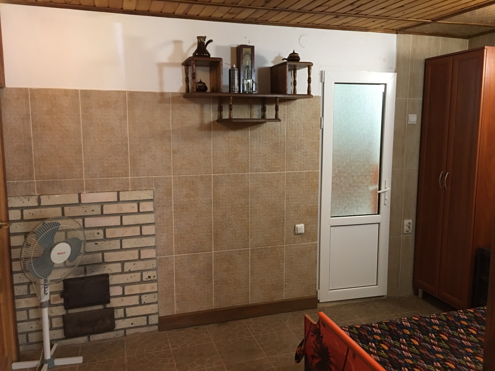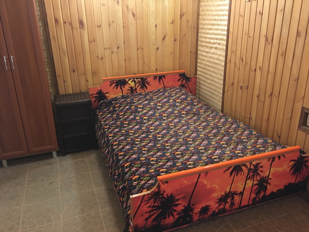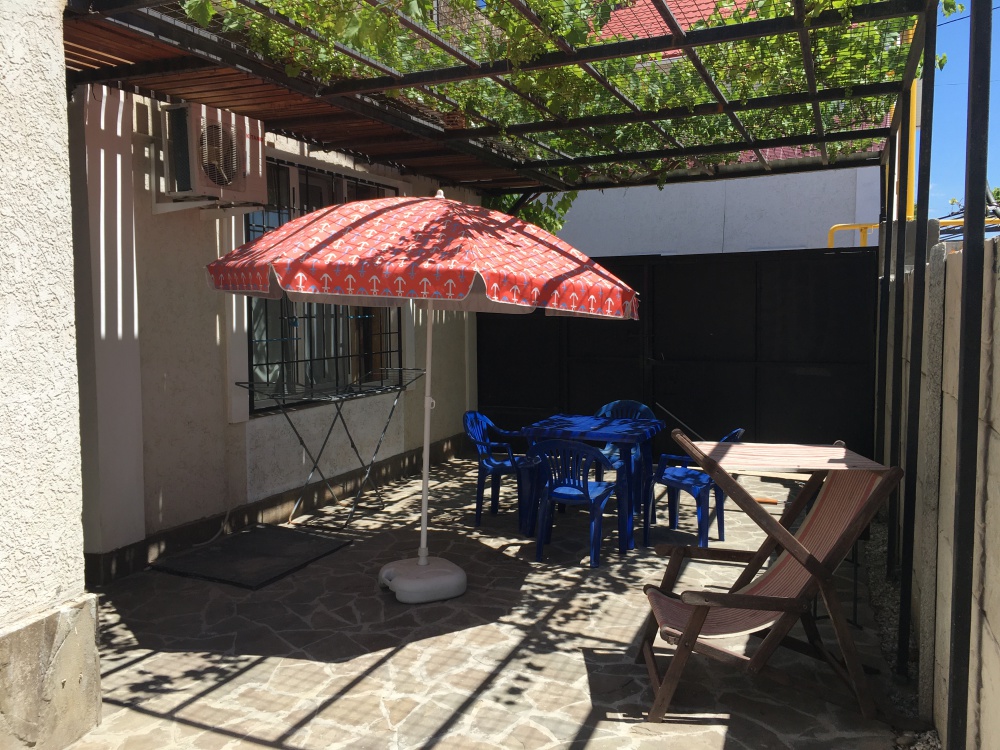 Однокомнатный номер в гостевом доме на 1-м этаже. Две смежные комнаты с кухонным уголком и санузел. Так же есть свой изолированный дворик (может использоваться как парковка). Первая комната «студия» - раскладной диван, кухонный уголок - в нем все необходимое: газовая плита, микроволновка, холодильник, вся необходимая посуда, стол, стулья, SMART TV, кондиционер. Вторая комната - спальня с двуспальной кроватью, платяным шкафом, можно установить детскую кроватку или еврораскладушку.