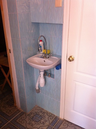 Санузел с душем . Так же есть мини кухня , холодильник, микроволновка, плита, посуда.
