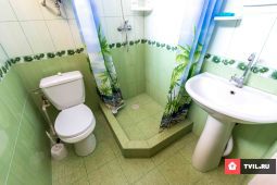 В наличии есть двухместные, трехместные, двухкомнатные номера с сан.узлами и душевыми,