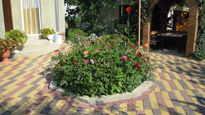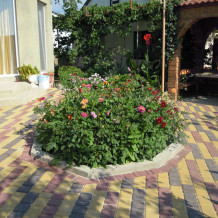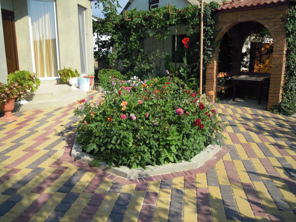 Большой красивый двор,много цветущих и экзотических растений, несколько беседок на территории двора, мангал, стоянка для авто.