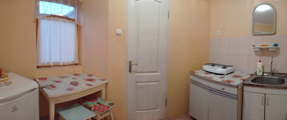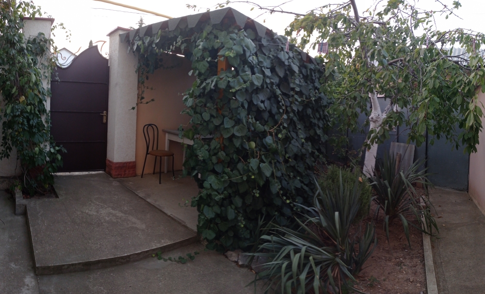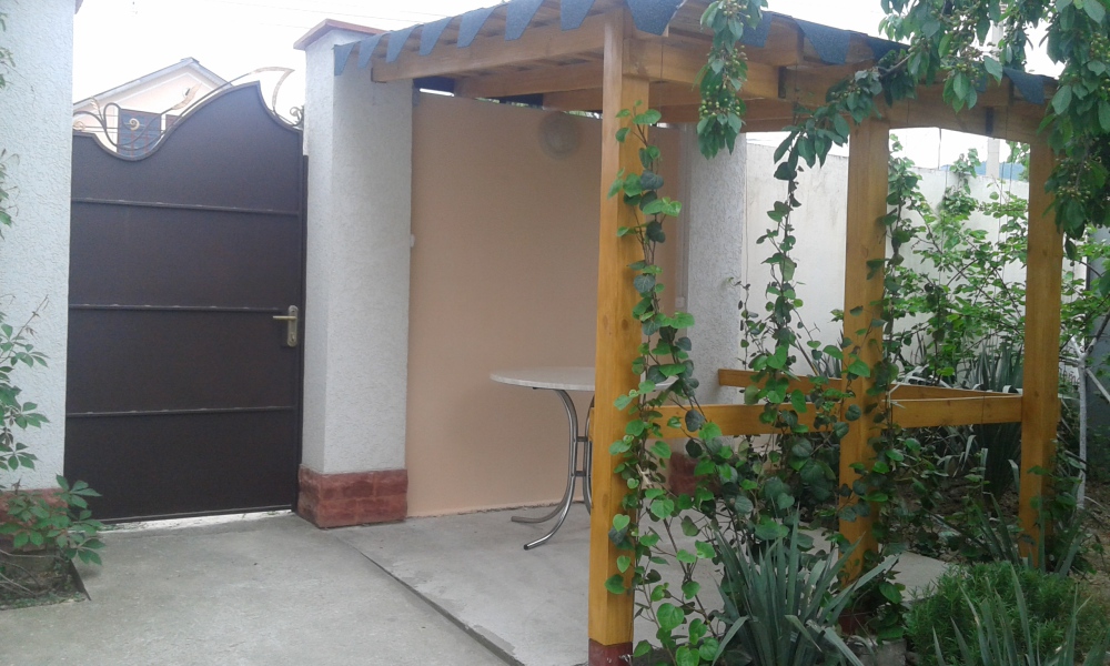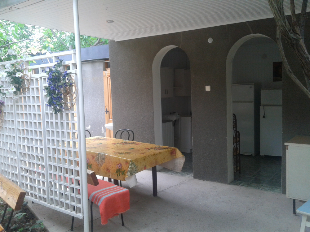 Двухкомнатный домик со всеми удобствами, своя кухня со всей необходимой посудой, сан.узел и душевая, балкон. Есть все условия для хорошего отдыха: телевизор плазма, кондиционер, холодильник, интернет,вода круглосуточно ,постельное бельё,ст.машинка общего пользования и т.д. Большой красивый двор ,беседка, зона барбекю, стоянка для авто.