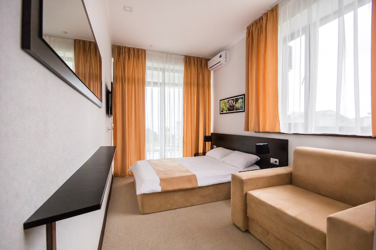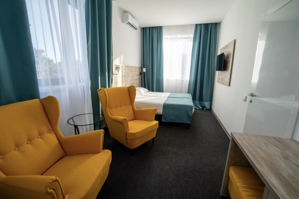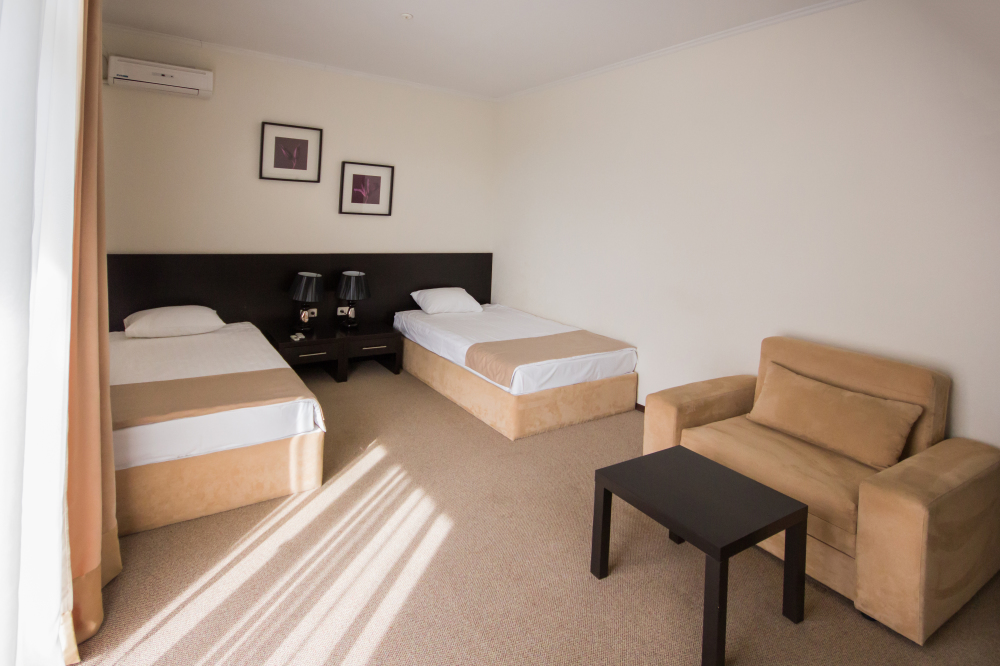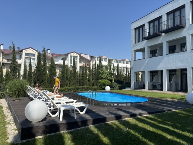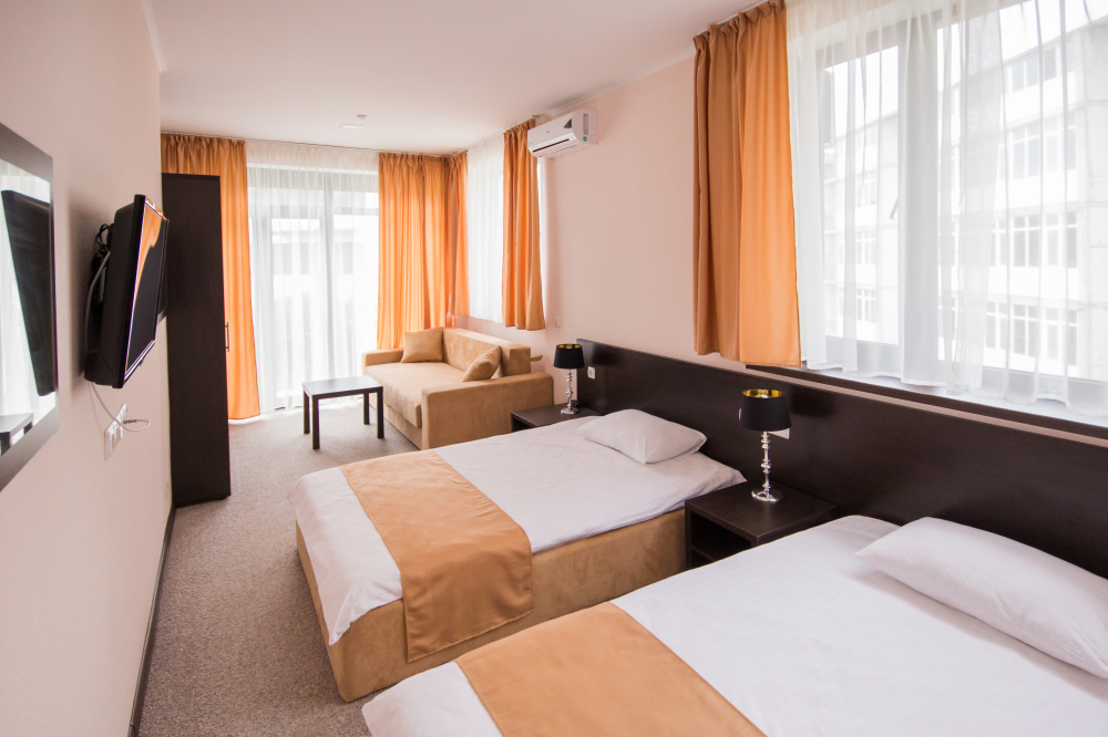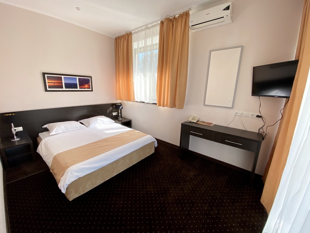 Современный отель с уютными номерами располагает к комфортному семейному отдыху. Рядом замечательный, благоустроенный песчаный пляж «Учкуевка», детский парк и вся инфраструктура города: магазины, рынок, аптека, поликлиника, развлечения.