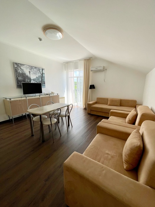 Двухкомнатный номер, рассчитанный на семью из 2-х - 4-х человек. С великолепным видом и огромной террасой.