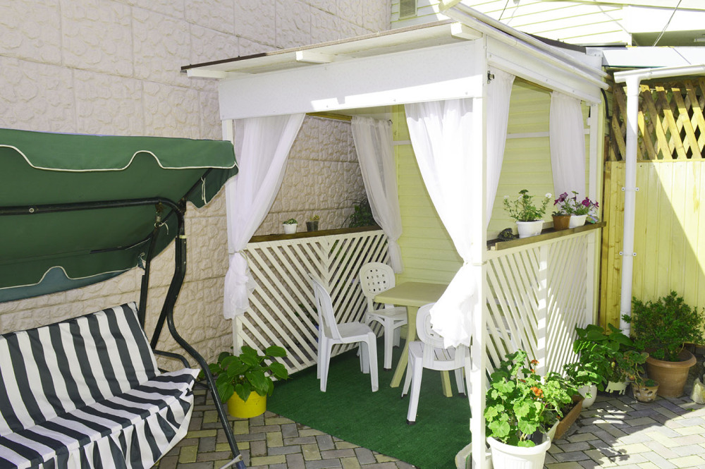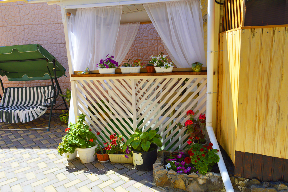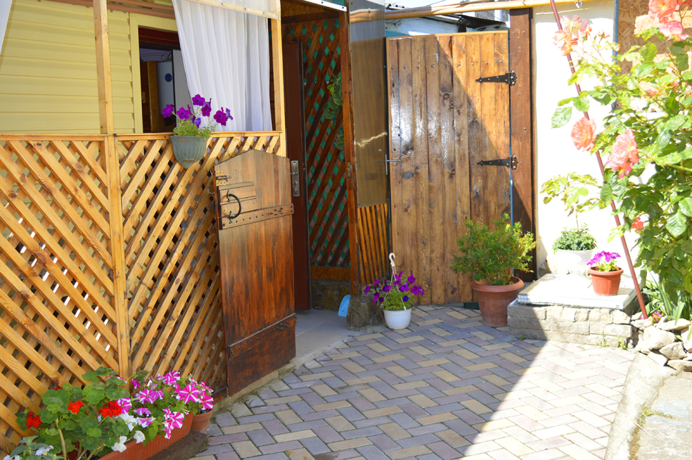 Домик имеет свой отдельный дворик с уголком для отдыха. Много зелени, цветов. Дом расположен в одном из лучших районов города -Бульварная горка . Рядом море, разные пляжи, галечный и песчаный, до набережной и всех развлечений идти ровно 2 минуты, до рынка 10 минут ходьбы. Из дома до моря можно идти прямо в купальнике, позагорать, поплавать и на обед, домой не переодеваясь посмотрите фото. Если вы хотите жить в тихом спокойном районе у моря, и рядом со всеми развлечениями , то данный вариант вам подойдет. Рядом с домом парк и Казанский Собор. На фото видно сколько идти до моря, вышли из дома и видно море. Рядом с домом столовая. Пообедать можно за 200-250 рублей на человека.