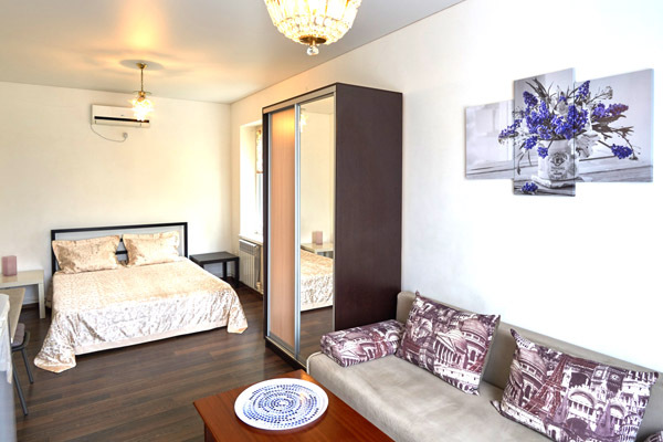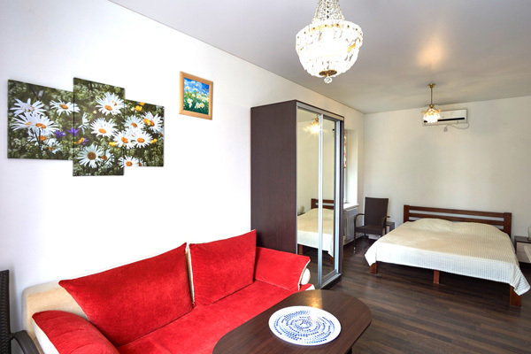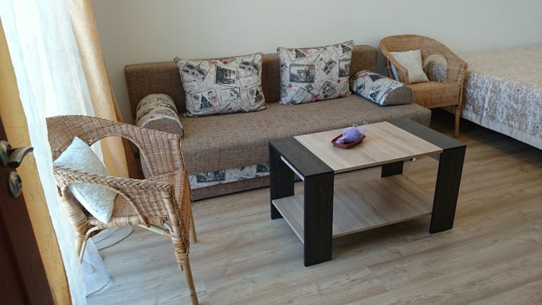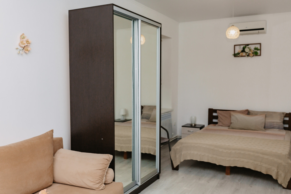 – двуспальная кровать с ортопедическим матрасом, раскладной диван, платяной шкаф;
