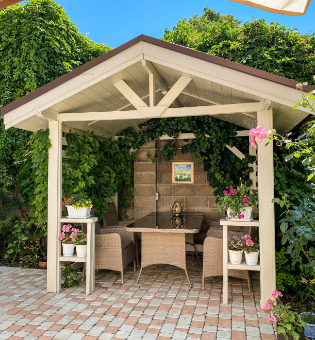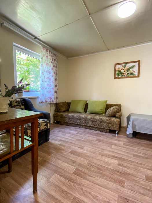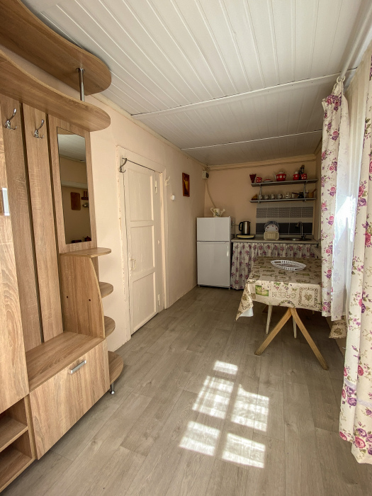 Отдельно стоящий дачный домик удобен для размещения компаний и больших семей. Спальня+кухня.