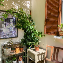 Всего у нас 3 комнаты, в которых спальная, рабочая и гостевая зоны объединены в единое пространство, а также расположенная на 2-м этаже комната-«универсал», где кухня отделена от остального пространства комнаты.