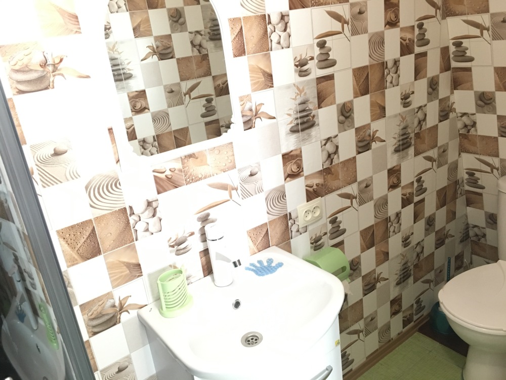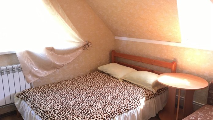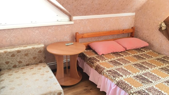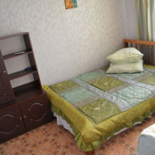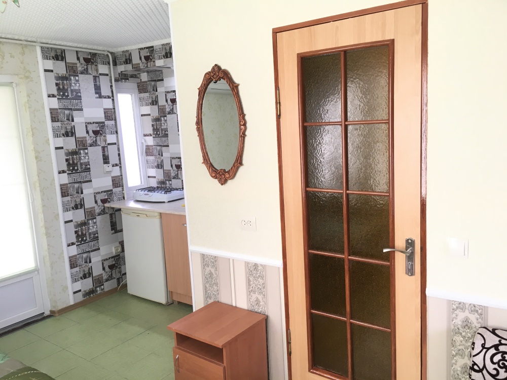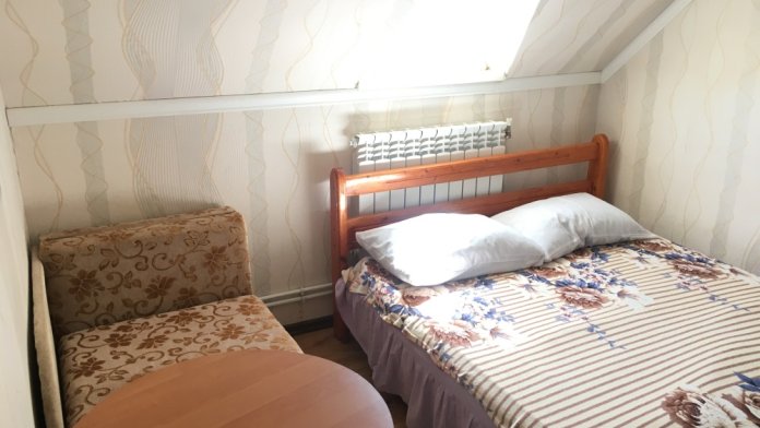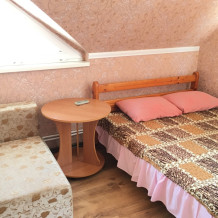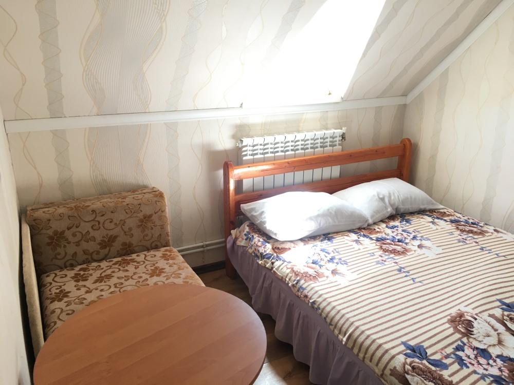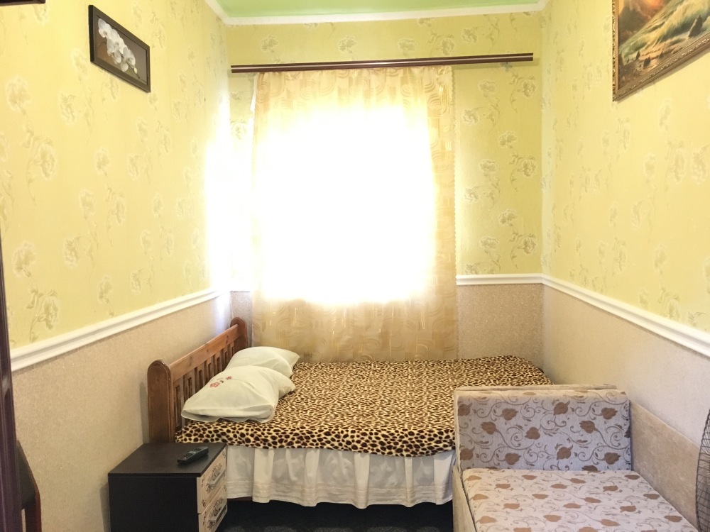 В номере находится 2-х спальная кровать с ортопедическим матрацем, кресло-софа, столик , стул, телевизор, холодильник, кабельное ТВ, WI-FI, кондиционер,вентилятор. Душевая и санузел на 2 номера.