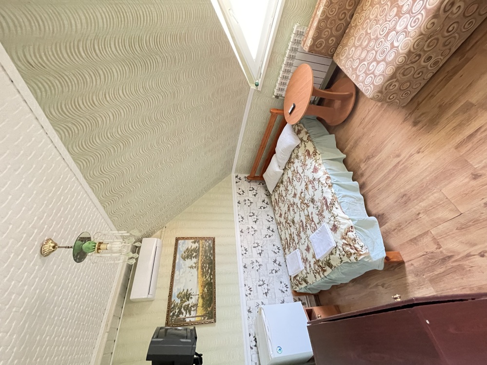 В номере находится 2-х спальная кровать с ортопедическим матрацем, кресло-софа, столик, стул, телевизор, холодильник, кабельное ТВ, WI-FI, кондиционер. Санузел ,душевая в номере.