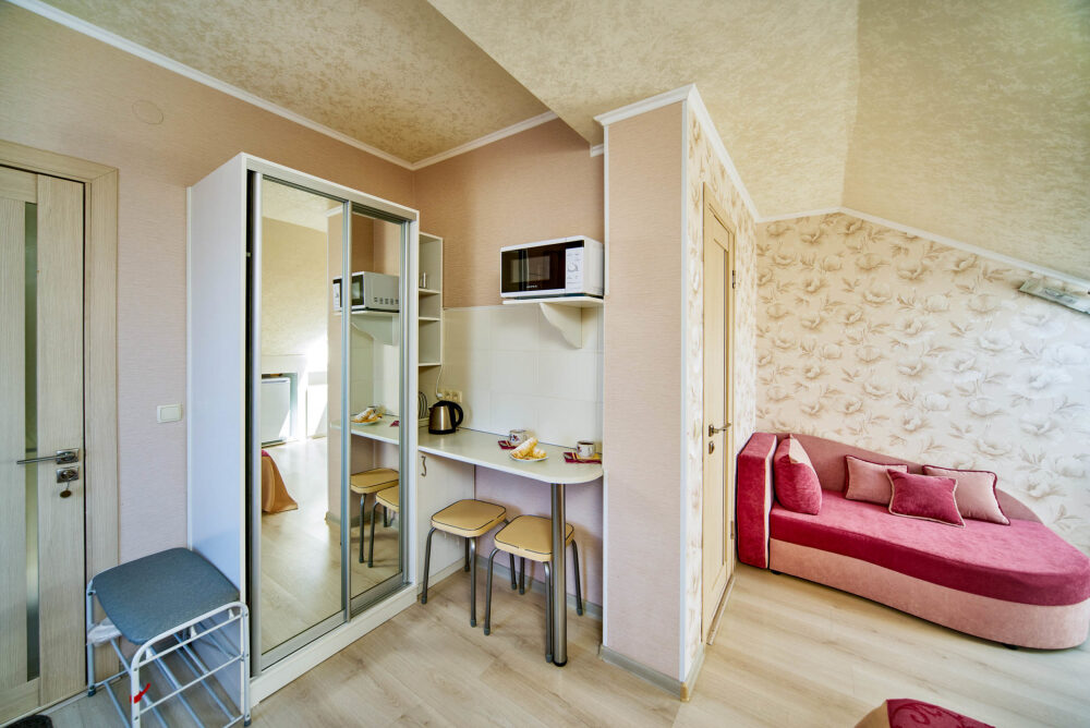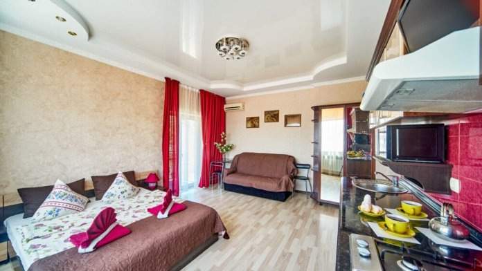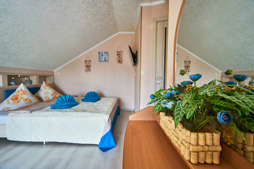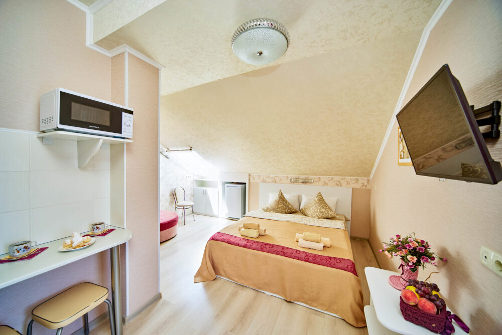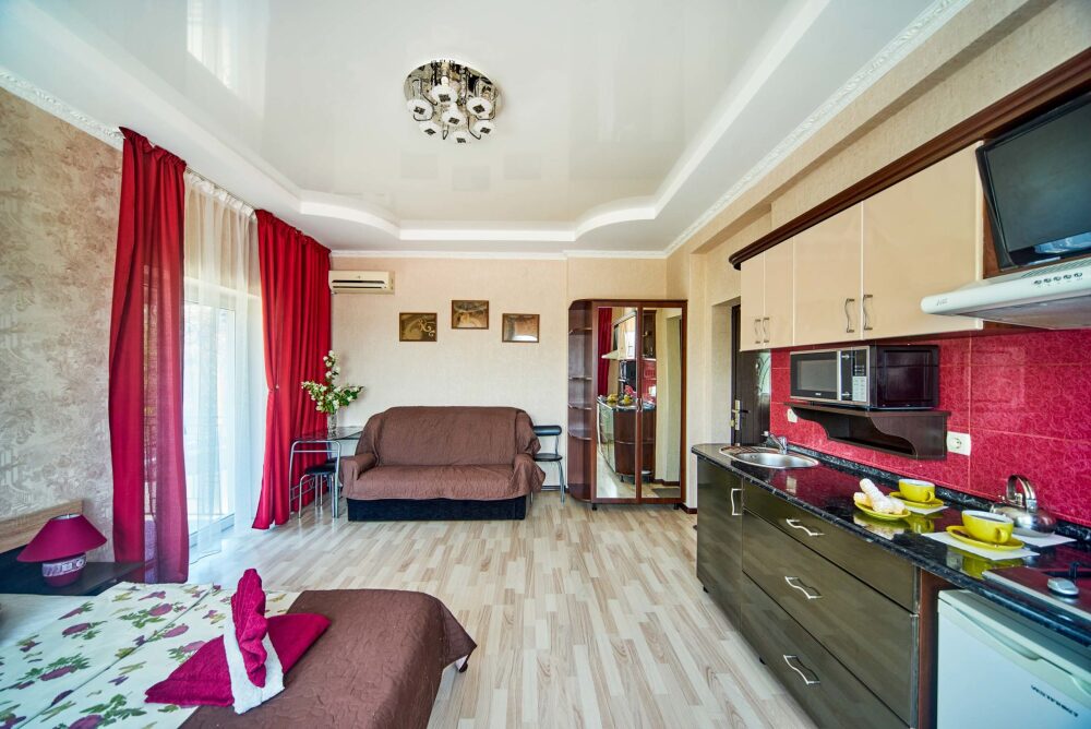 Комнаты гостевого дома могут быть выбраны исходя из Ваших потребностей: это могут быть комнаты-студии с индивидуальной кухней, комнаты с летней кухней или комнаты с мини-кухней. В каждом комнате индивидуальный санузел и душ, удобные спальные места с ортопедическими матрацами, наличие фена и сейфа.