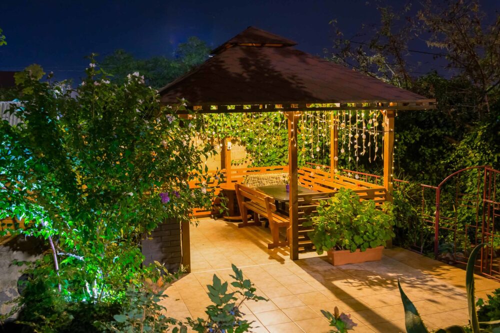 Придомовая территория благоухает в зелени цветущих растений. К Вашим услугам несколько беседок с вечерним освещением, мангалом, зоны отдыха с качелями, детская площадка с бассейном.
