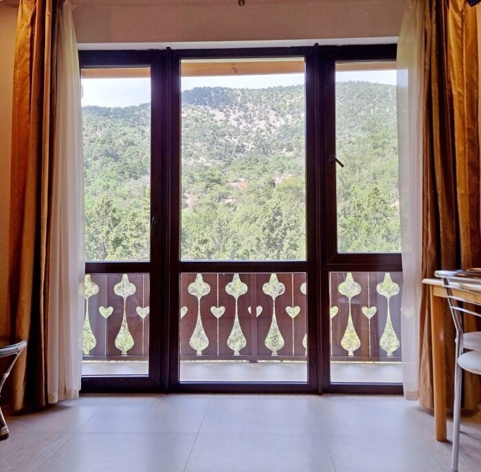Отсюда открываются чудесные виды на живописные горы и море.