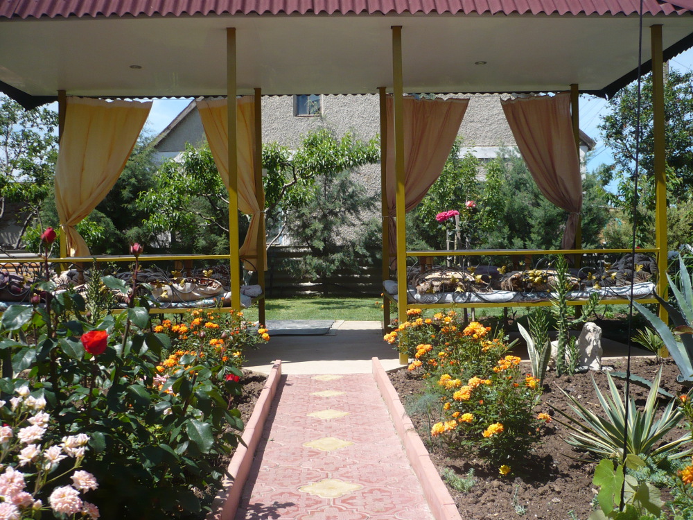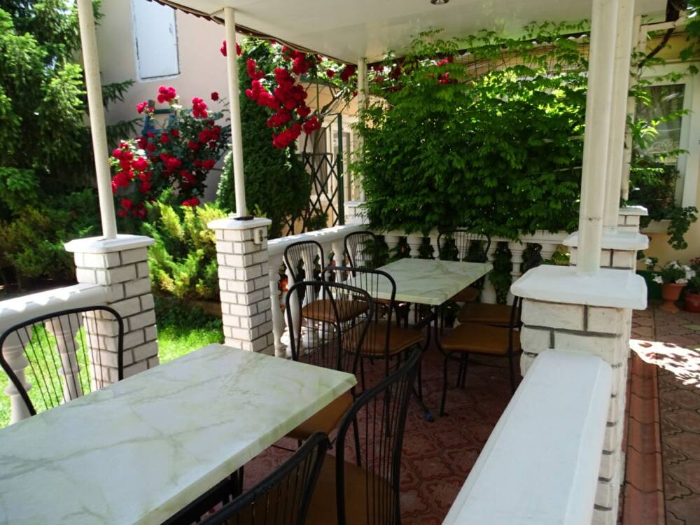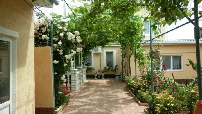 Двухэтажный гостевой дом расположен в 8 мин ходьбы от центра и автостанции и 10 - 15 мин ходьбы от моря (северо-западная часть Николаевки). Поэтому вечерний и ночной шум увеселительных заведений остаётся вдалеке. Для спокойного семейного отдыха это очень важно.