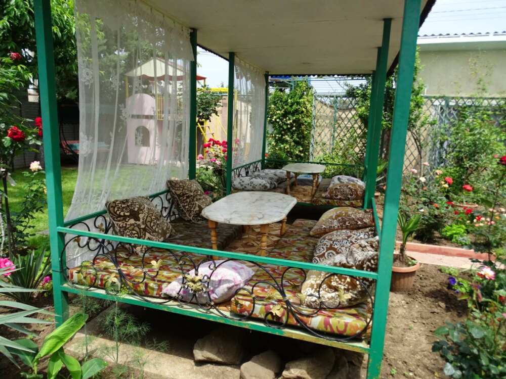 Для принятия пищи во дворе есть две беседки и две чайханы, зона барбекю с мангалом.