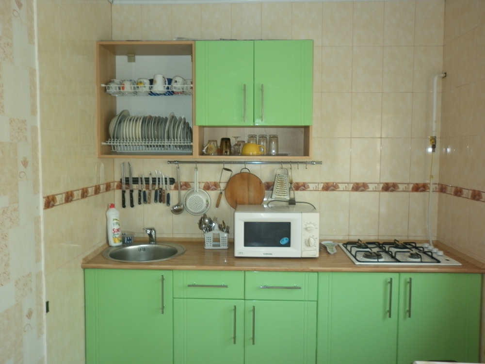В гостевом доме гости готовят еду самостоятельно. К услугам гостей предоставлены две кухни, оборудованные всем необходимым – газовые плиты, холодильники, микроволновки, кухонная посуда.