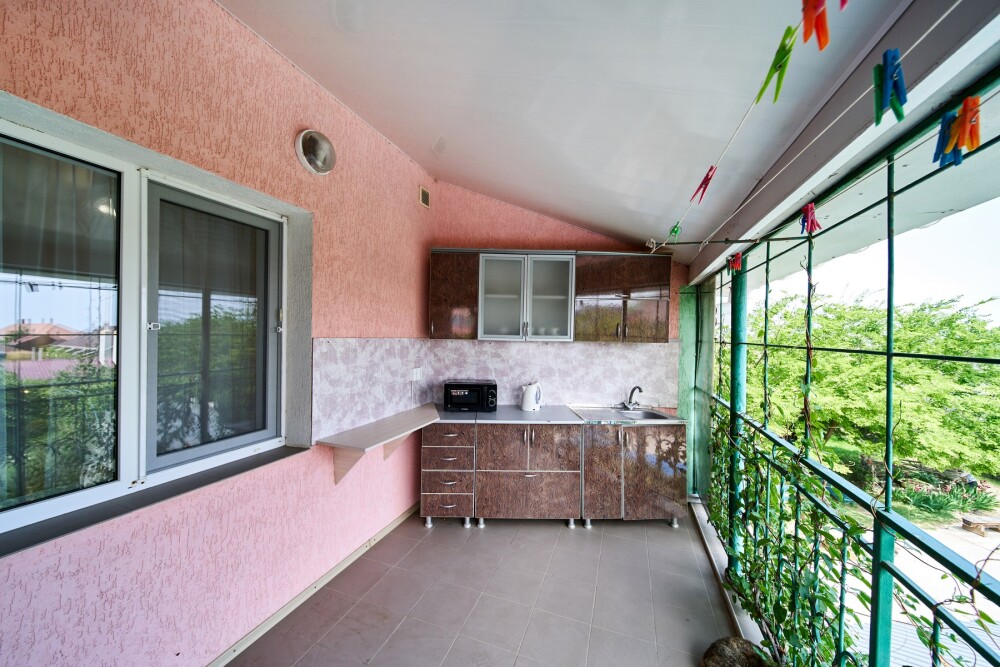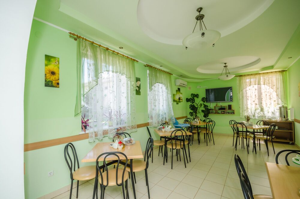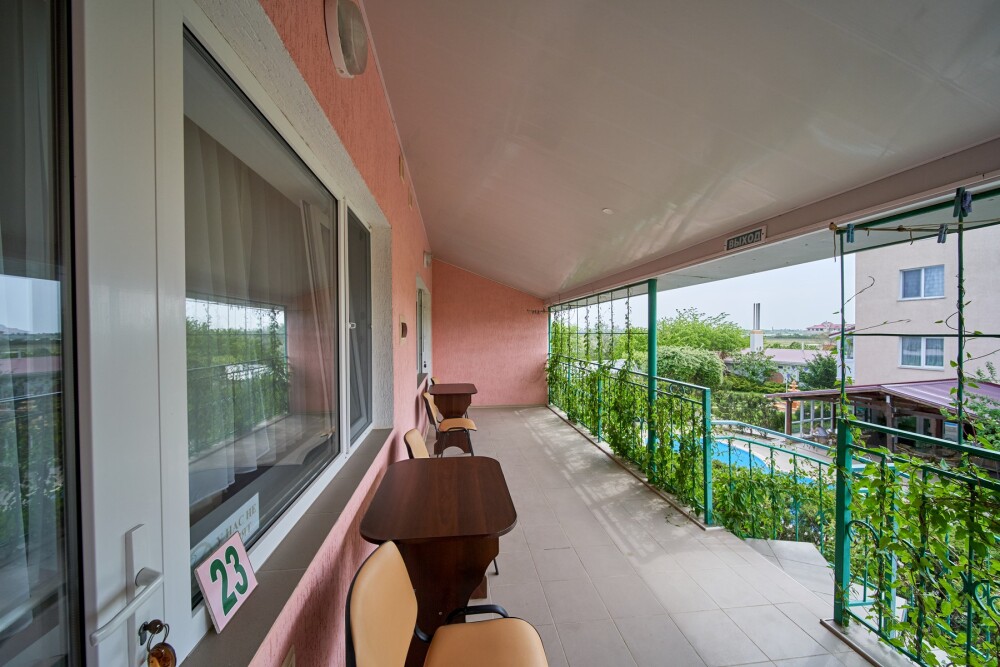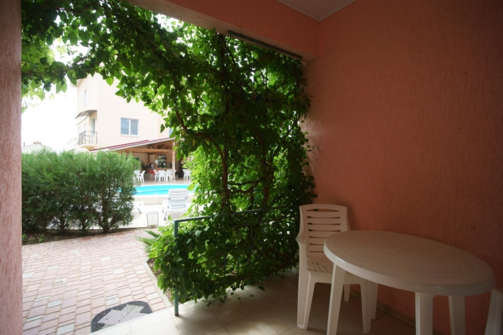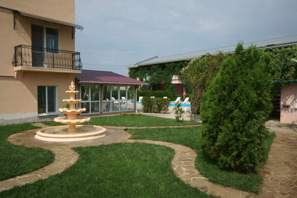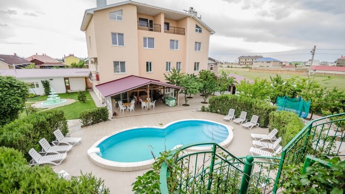 Это уютный, небольшой гостевой дом с приемлемыми ценами. Укрытые зеленью приватные террасы на каждый номер подарят Вам комфорт и уют! Рядом лечебные грязи на лимане, хорошие и большие песчаные пляжи. Отдых на море хорошо дополнит бассейн с подогревом, вкусная и здоровая пища, анимация, гостеприимство и радушие хозяев.