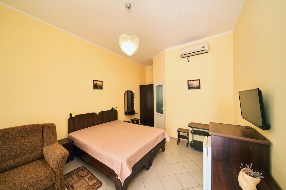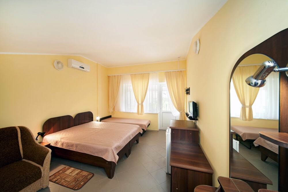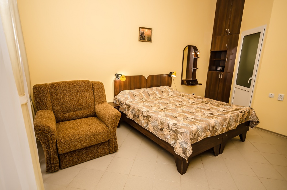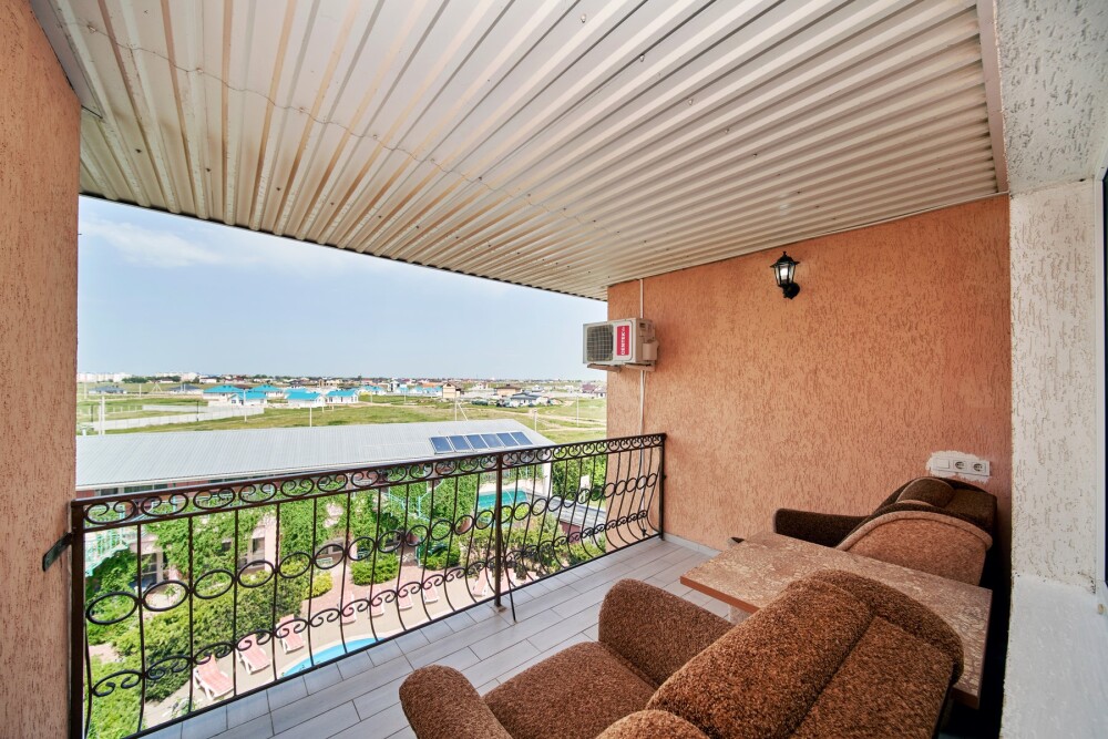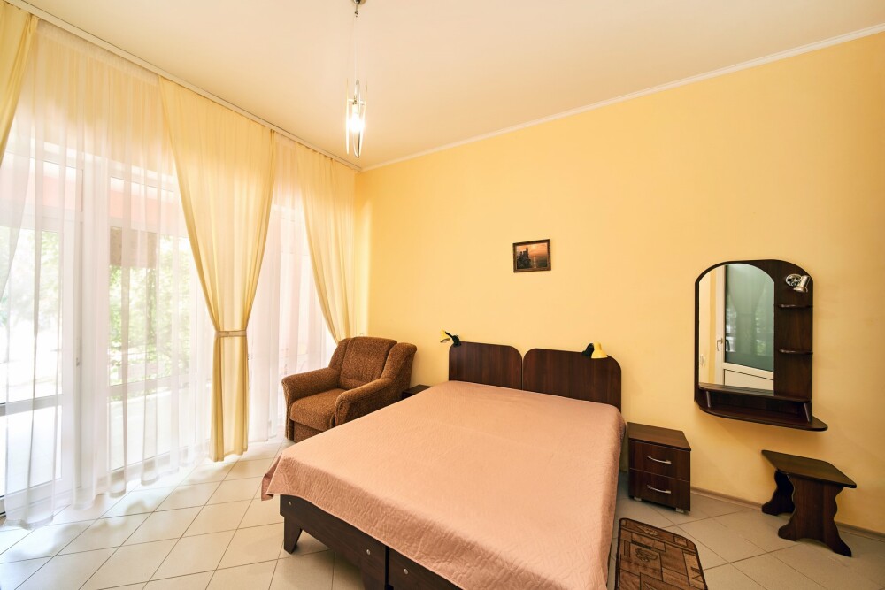 Это уютный, небольшой гостевой дом с приемлемыми ценами. Укрытые зеленью приватные террасы на каждый номер подарят Вам комфорт и уют! Рядом лечебные грязи на лимане, хорошие и большие песчаные пляжи. Отдых на море хорошо дополнит бассейн с подогревом, вкусная и здоровая пища, анимация, гостеприимство и радушие хозяев.