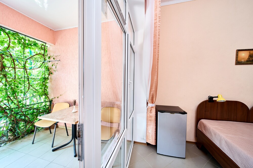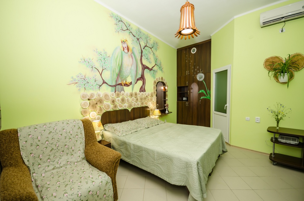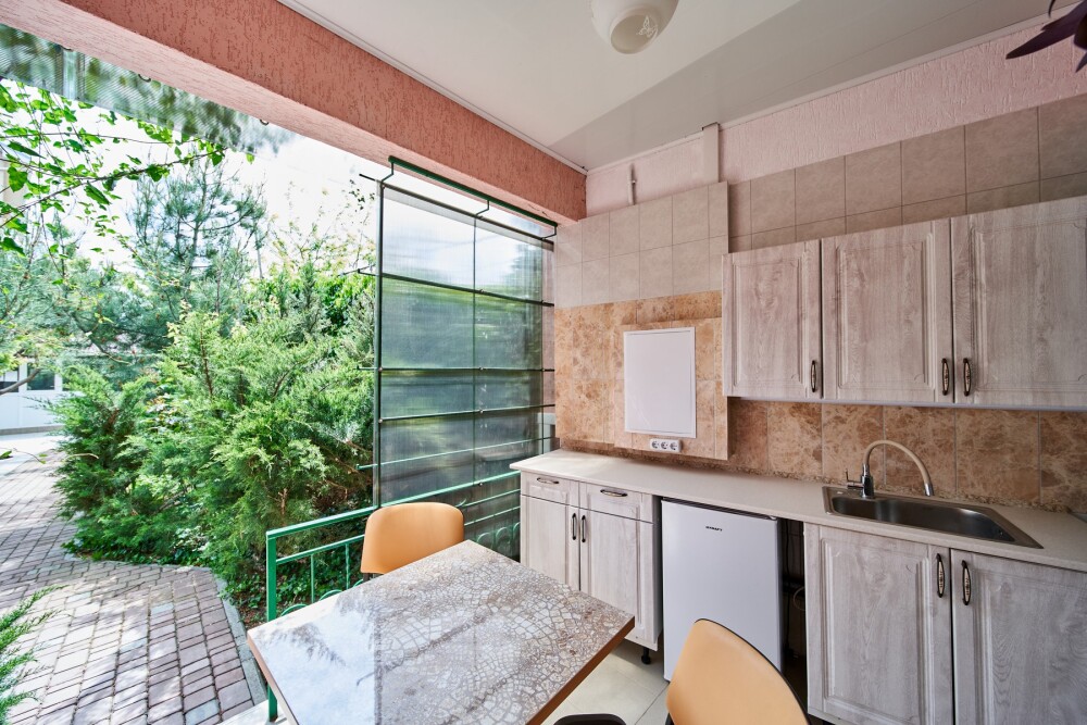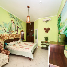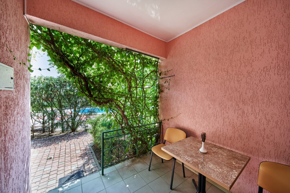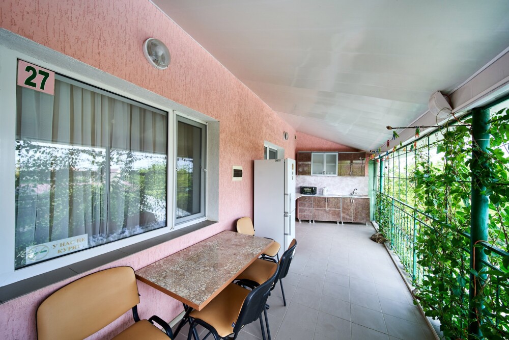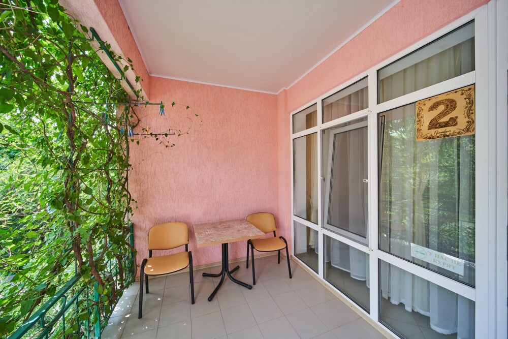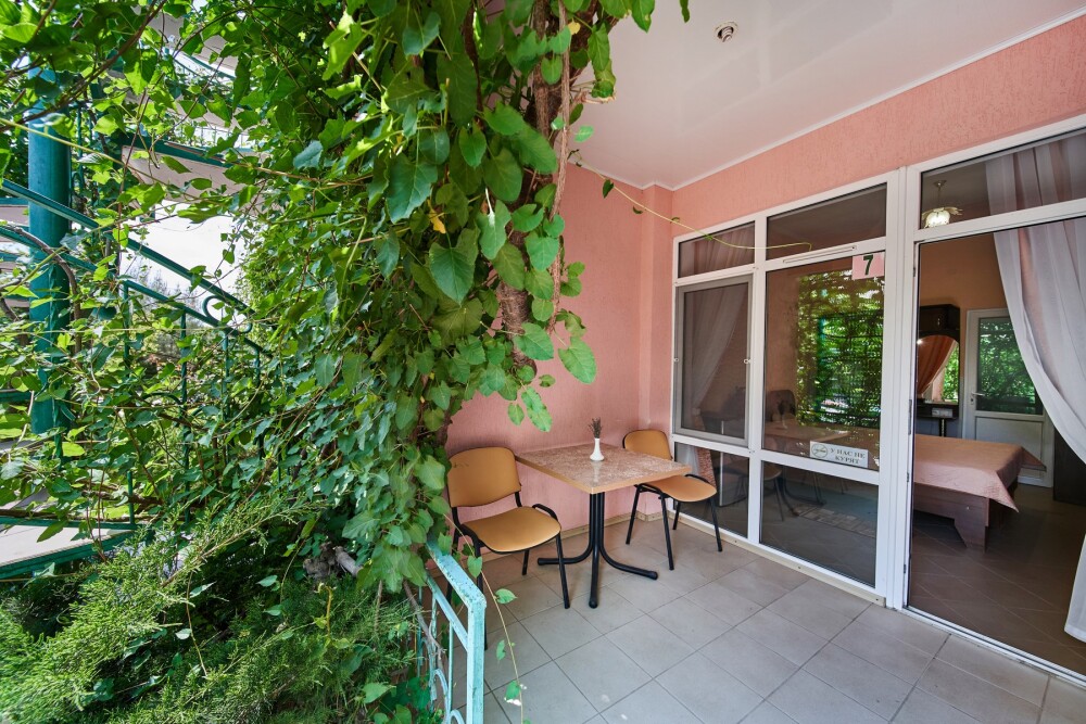 Семейный - это две комнаты со всеми удобствами. Вход идет через индивидуальную большую террасу увитую зеленью, на террасе находится кухня