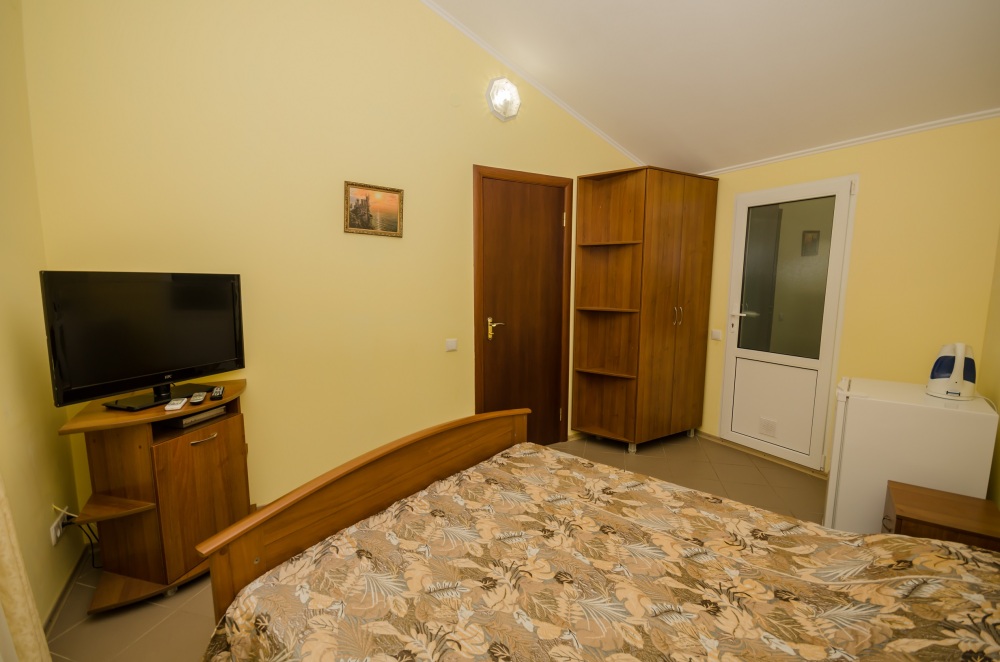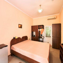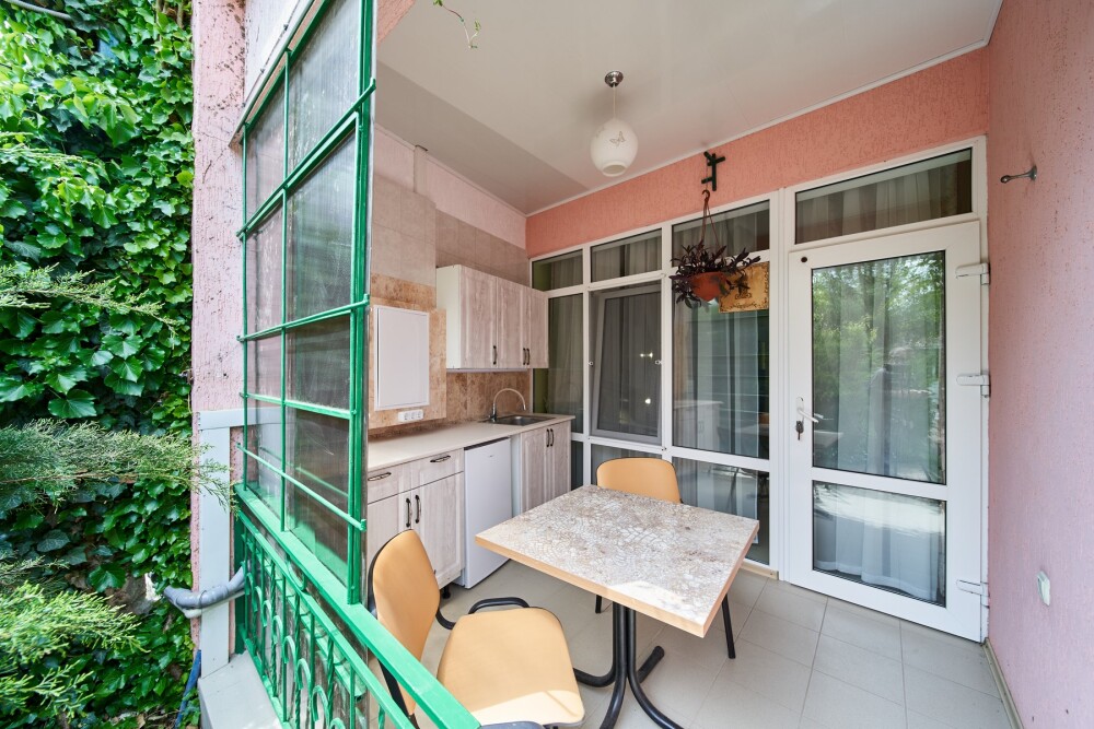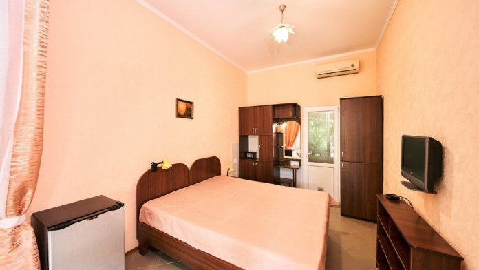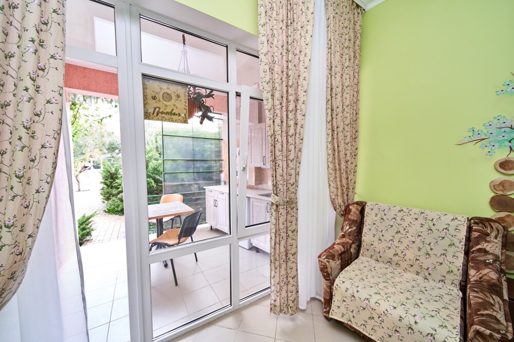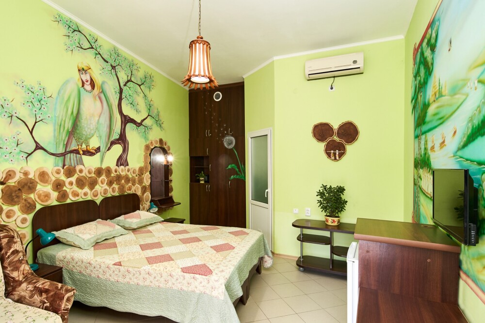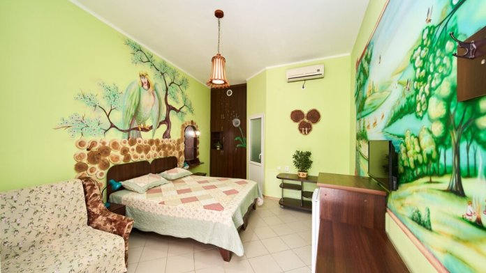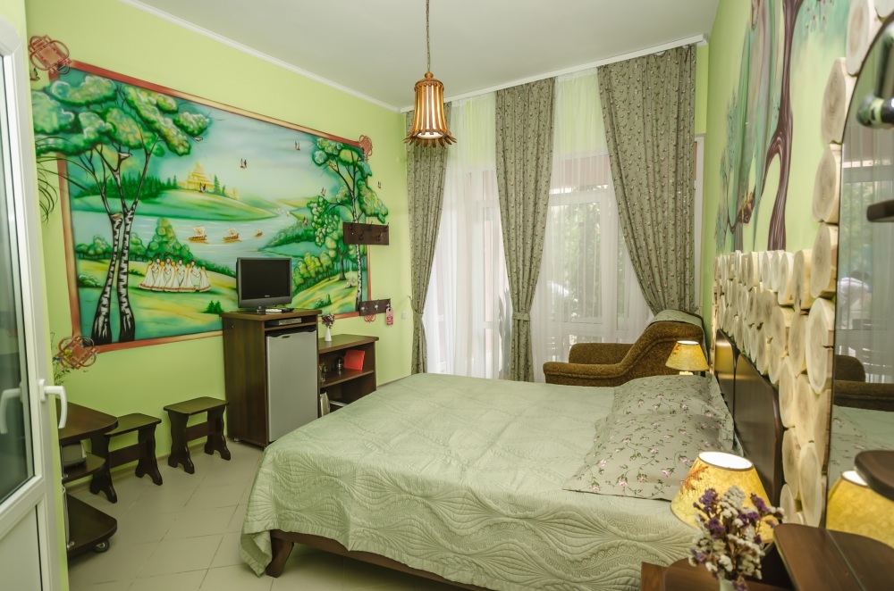 Семейный - это две комнаты со всеми удобствами. Вход идет через индивидуальную большую террасу увитую зеленью, на террасе находится кухня