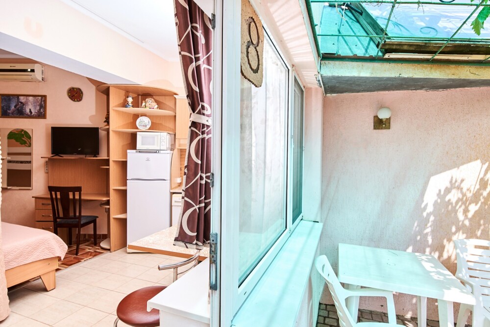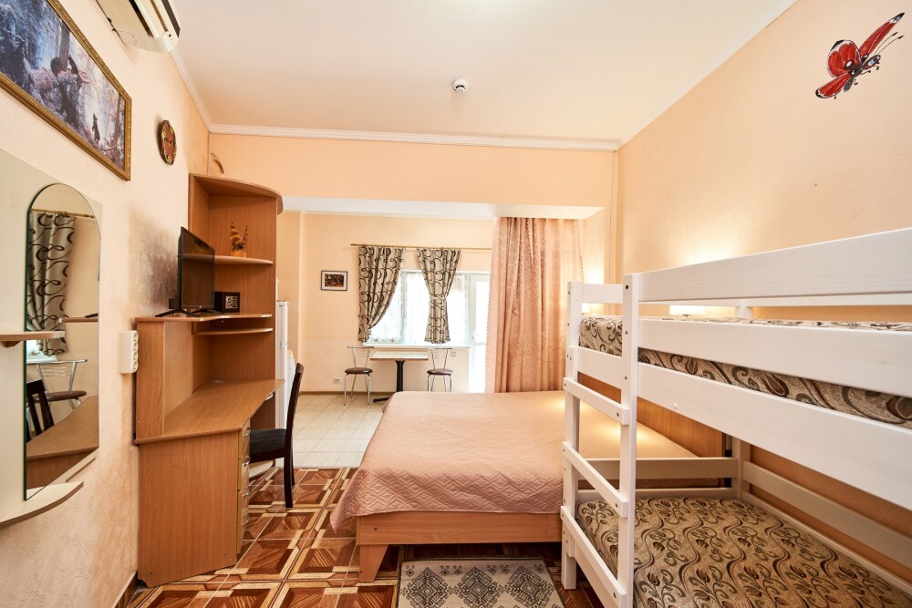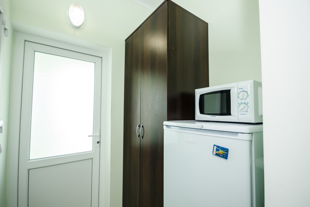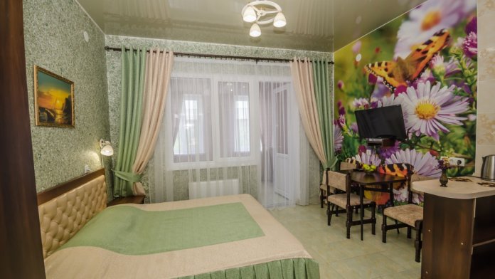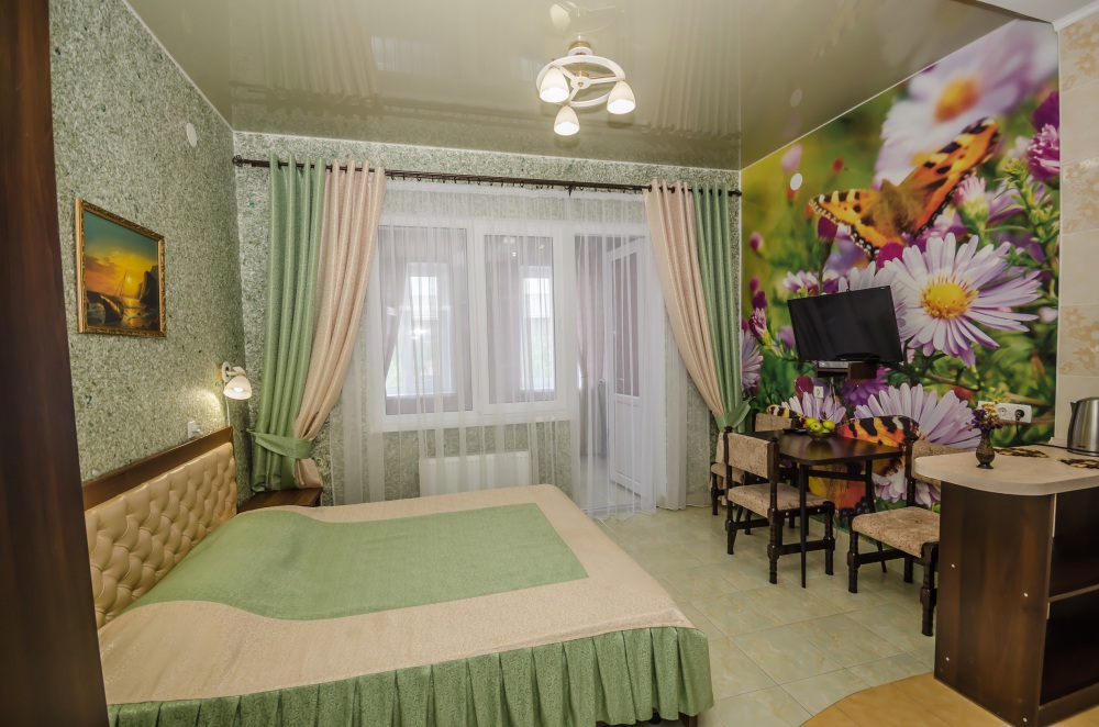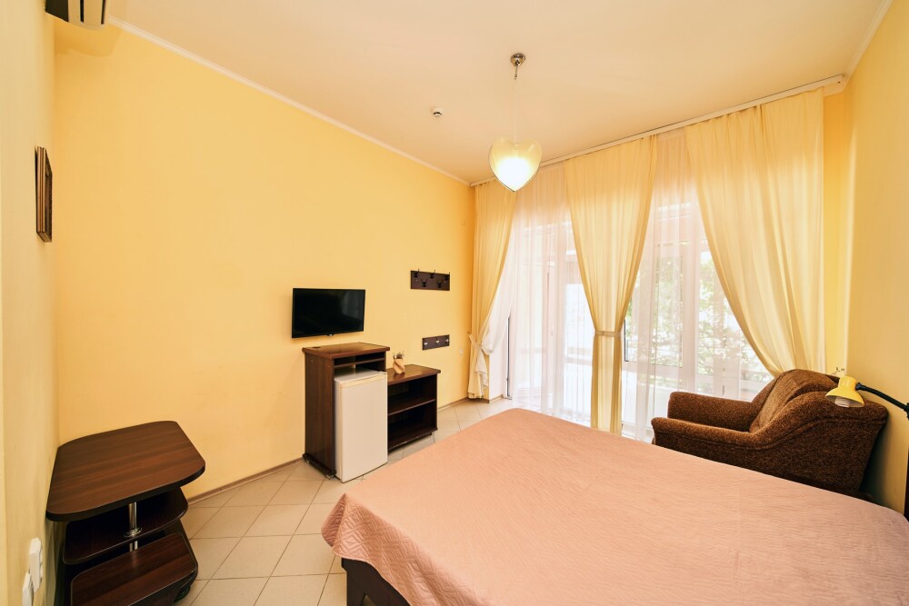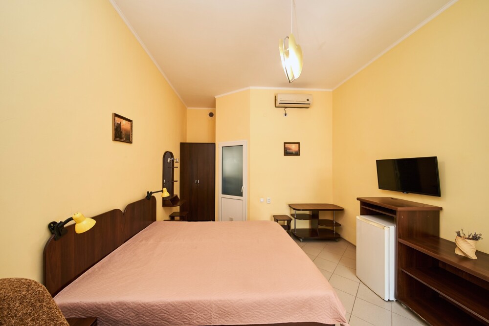 Стандарт с кухней-студией - это одна комната со всеми удобствами и кухонной зоной.