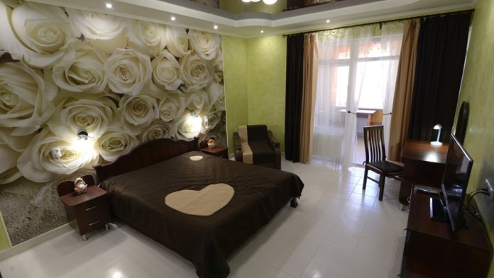 Студия - это двухкомнатный номер, где одна комната - просторная спальня, вторая комната - полноценная кухня.