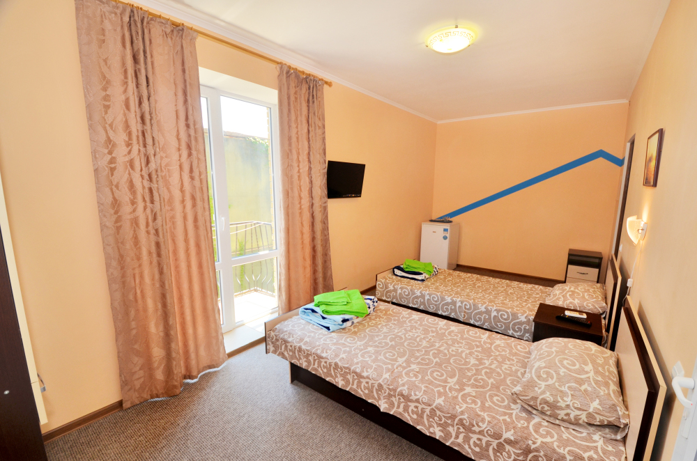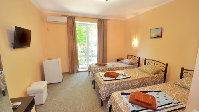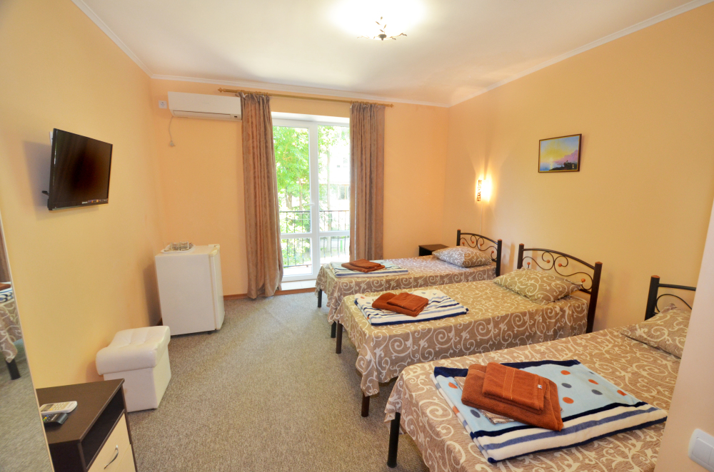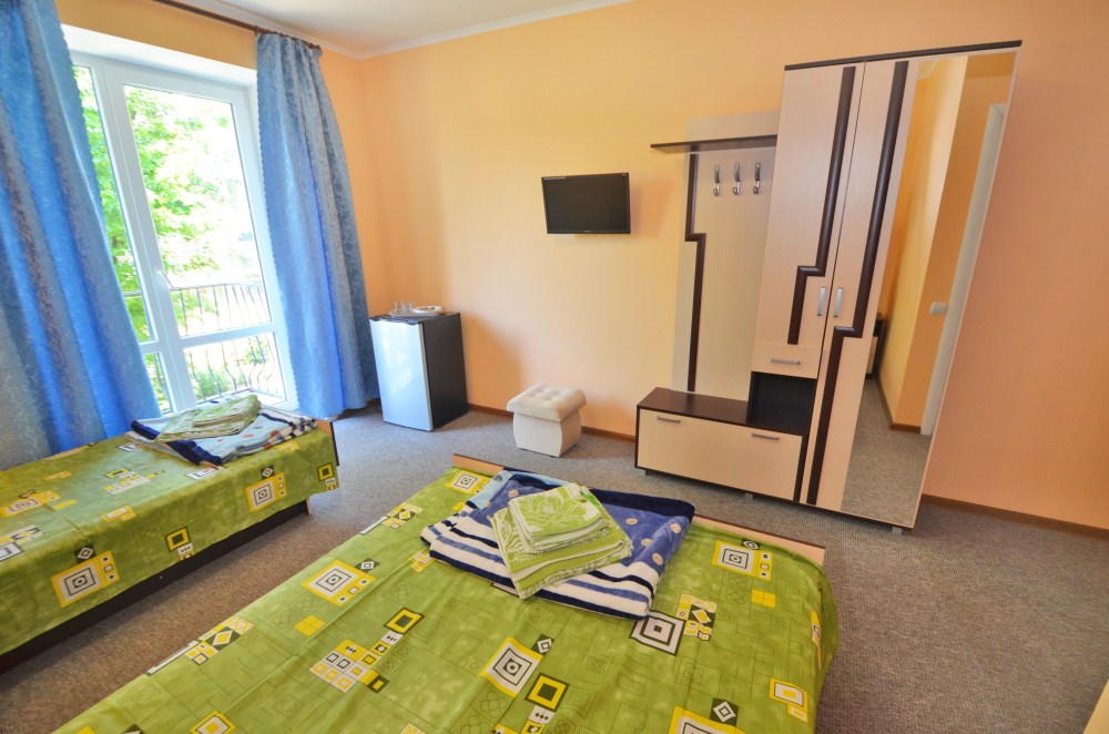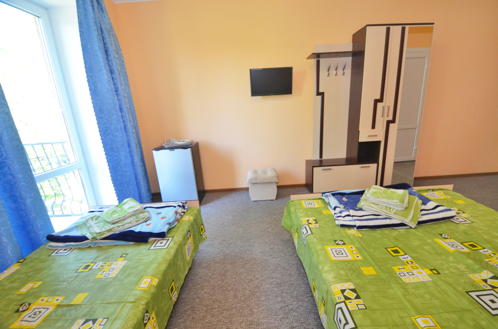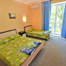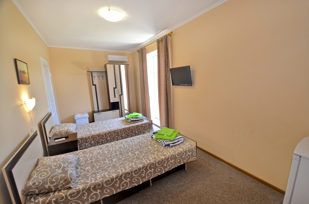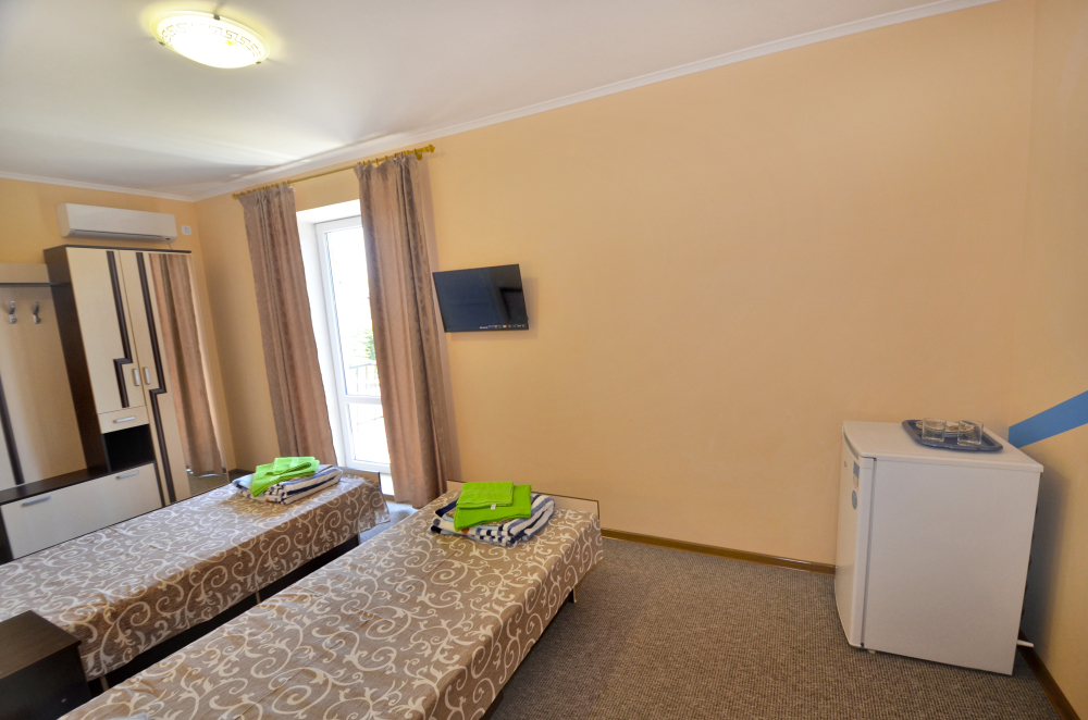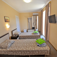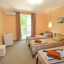 Это комфортабельные современные номера. Каждый номер оборудован удобной мебелью (три односпальные кровати шириной 90 см), современной сантехникой, кондиционером, холодильником, кабельным телевидением. В каждом номере есть балкон с видом во двор, есть бесплатный Wi-FI.