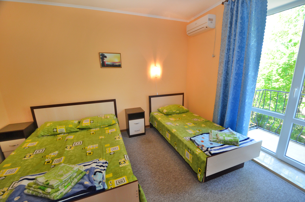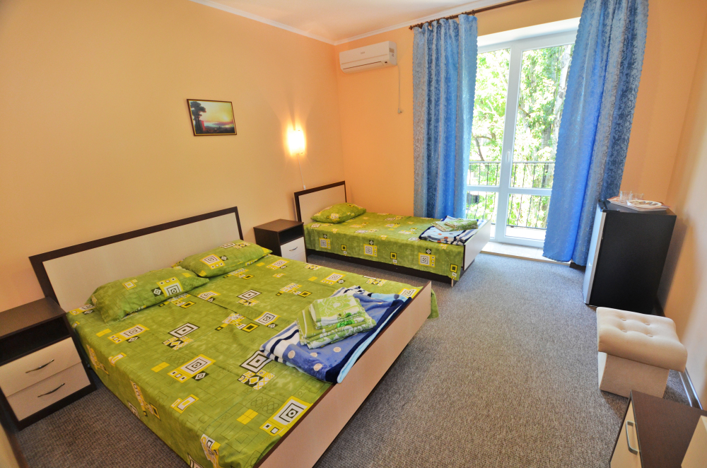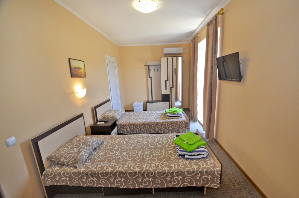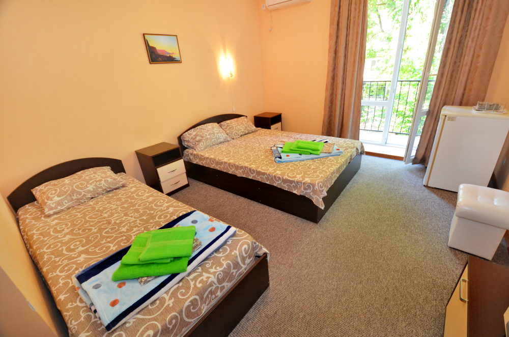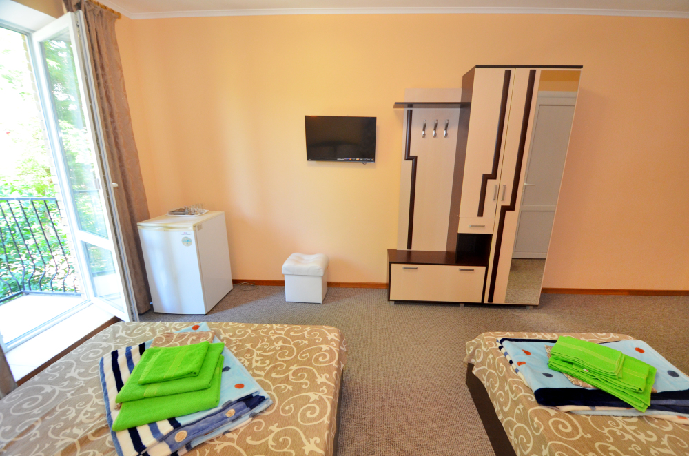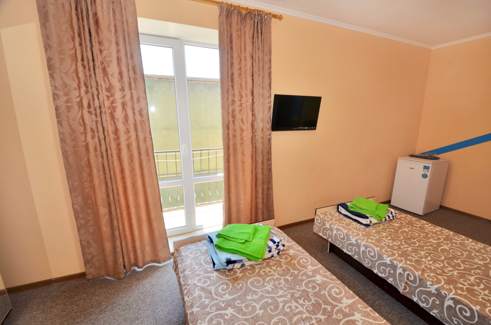 Это комфортабельные современные номера. Каждый номер оборудован удобной мебелью (три односпальные кровати шириной 90 см), современной сантехникой, кондиционером, холодильником, кабельным телевидением. В каждом номере есть балкон с видом во двор, есть бесплатный Wi-FI.