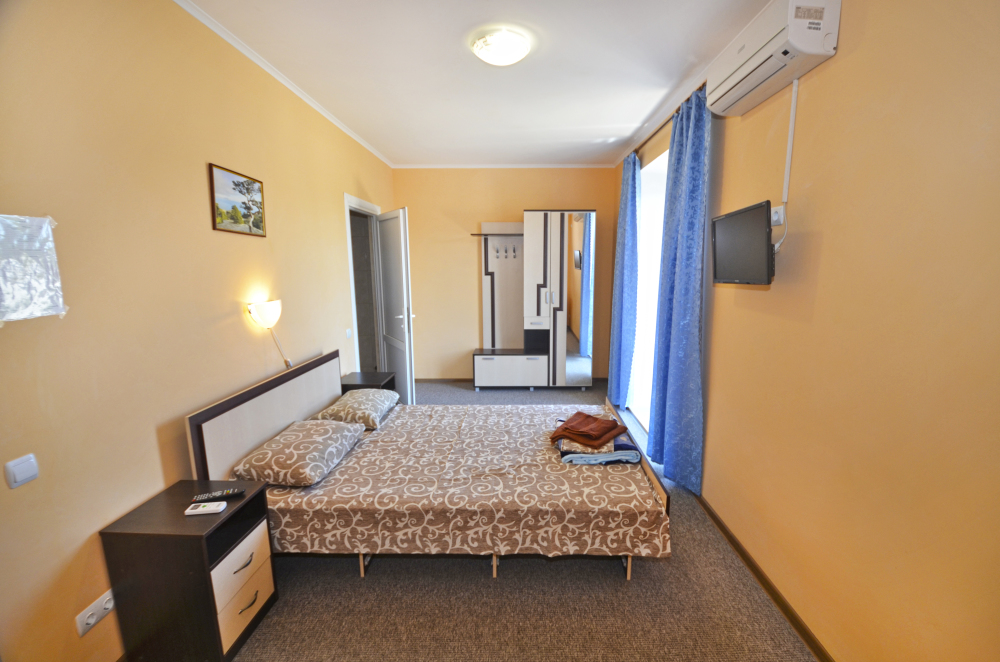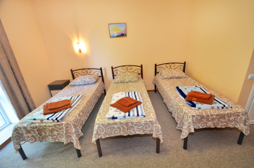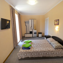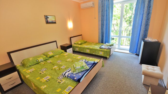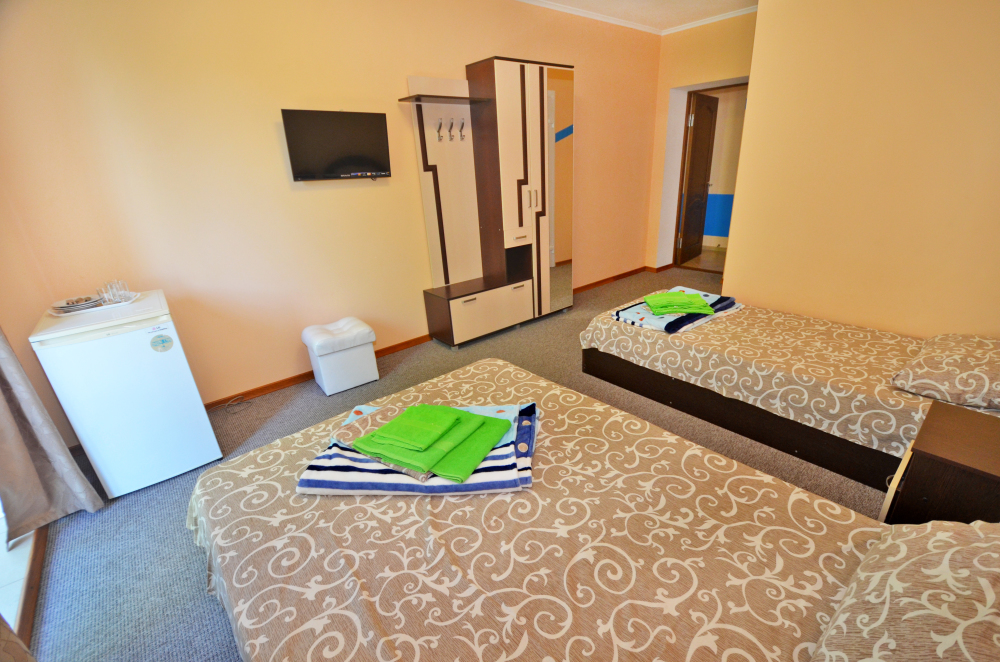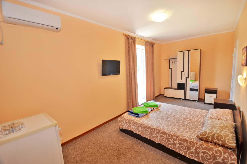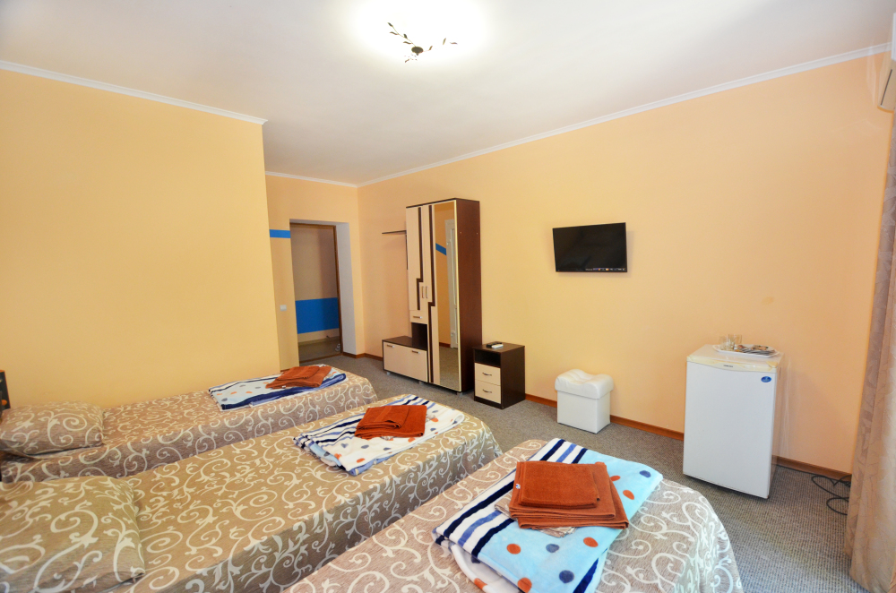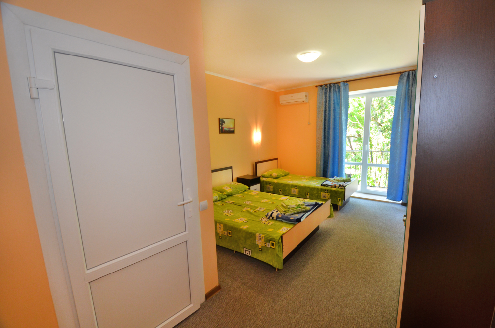Это комфортабельные современные номера. Каждый номер оборудован удобной мебелью (три односпальные кровати шириной 90 см), современной сантехникой, кондиционером, холодильником, кабельным телевидением. В каждом номере есть балкон с видом во двор, есть бесплатный Wi-FI.