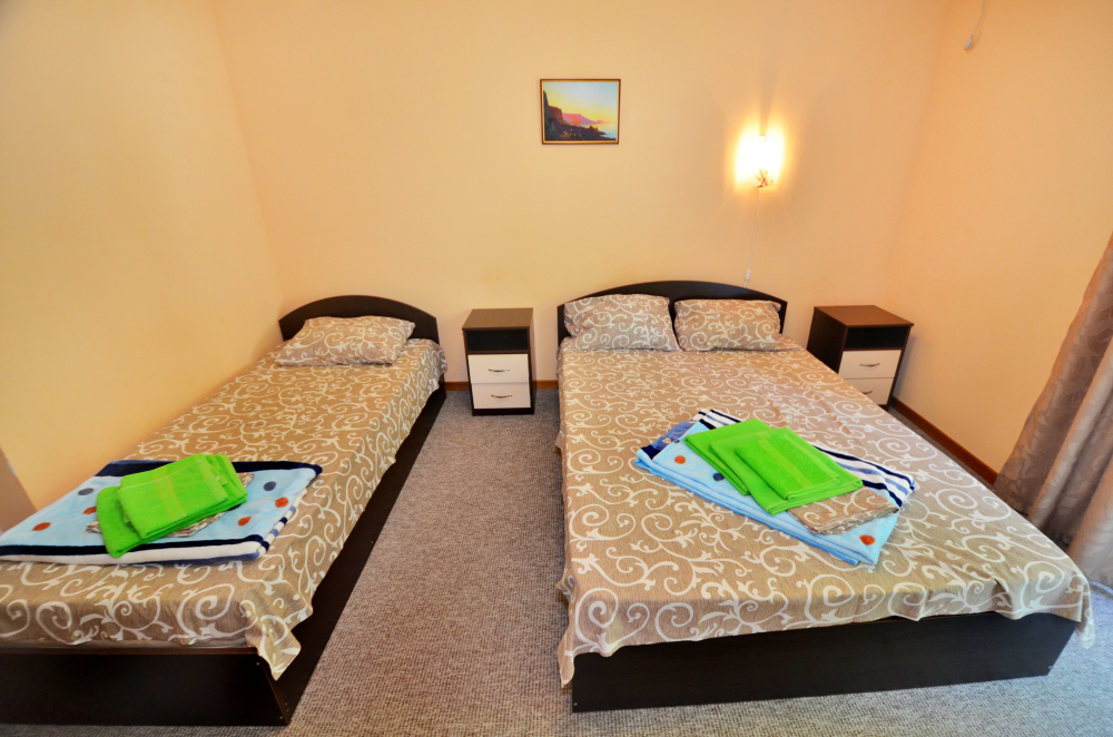 Сдаются двухместные и трехместные номера со всеми удобствами. В каждом номере есть телевизор, холодильник, кондиционер, необходимый набор посуды, санузел и душ. Постельное белье и полотенца - бесплатно. Все номера с балконом.