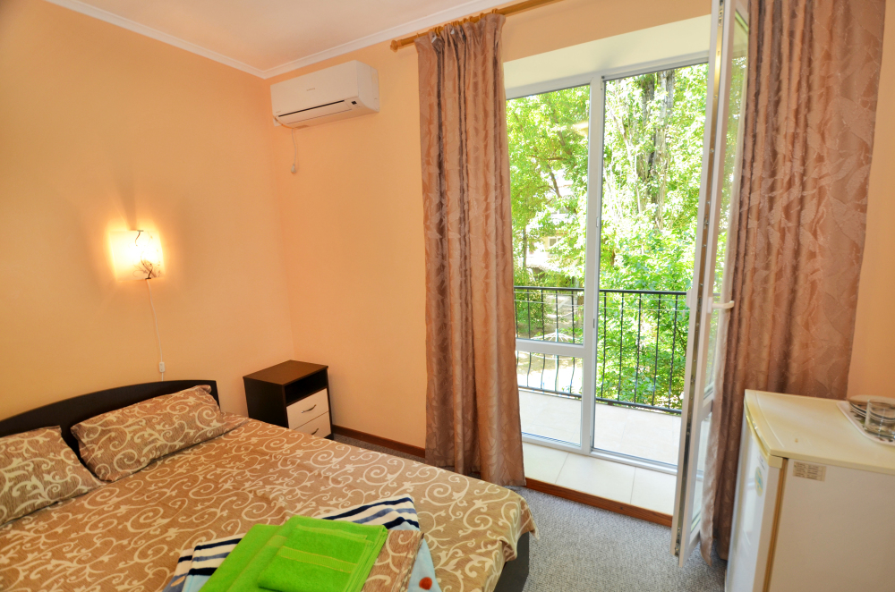 Это комфортабельные современные номера. Каждый номер оборудован удобной мебелью (двуспальная и односпальная кровать), современной сантехникой, кондиционером, холодильником, кабельным телевидением. В каждом номере есть балкон с видом во двор, есть бесплатный Wi-FI.
