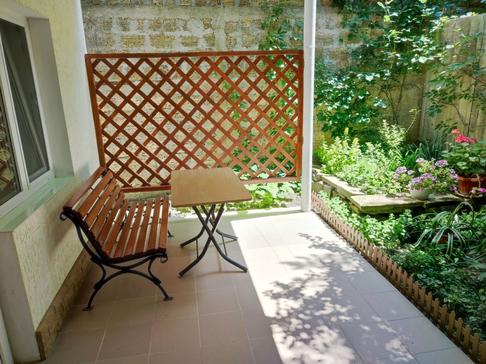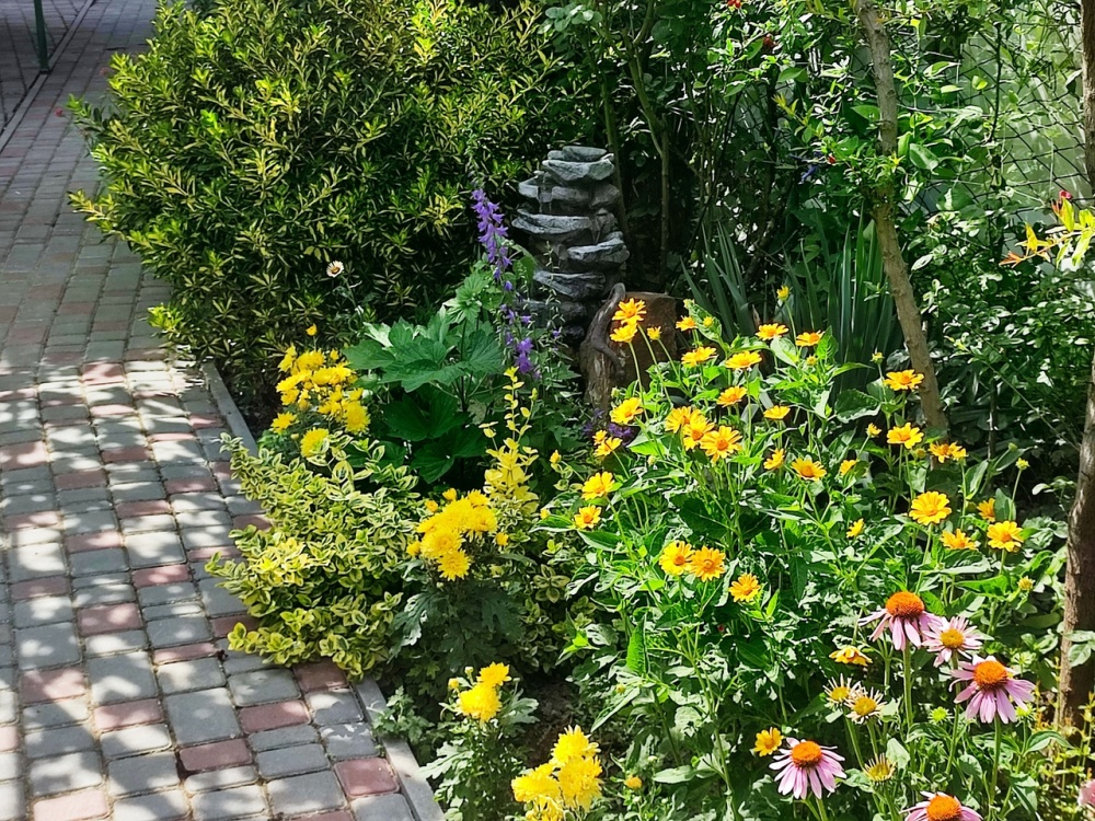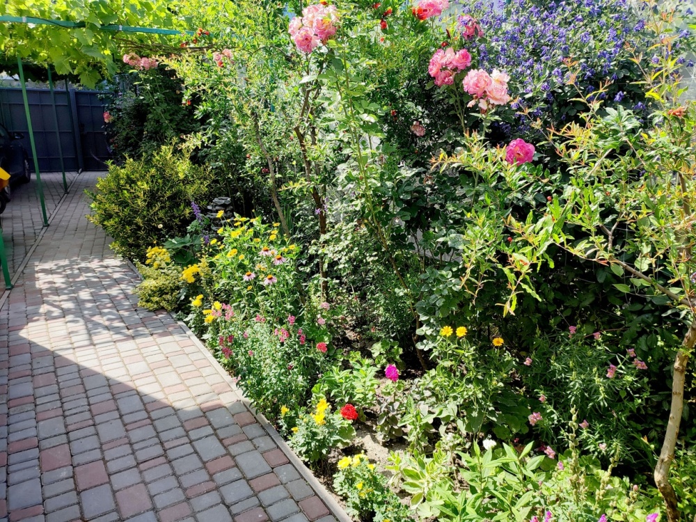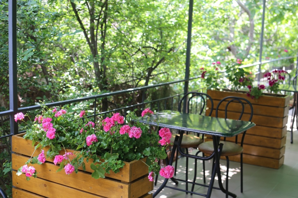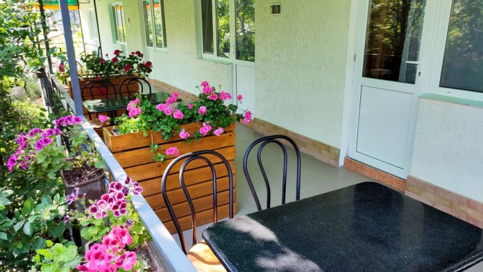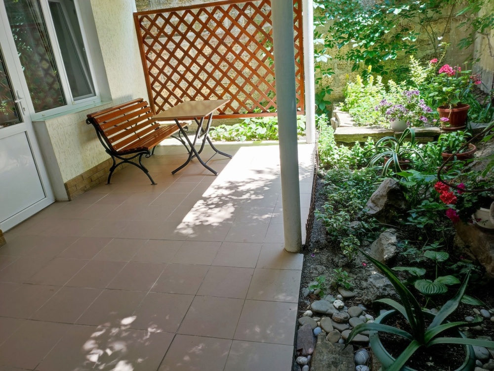 Напротив каждого номера отдельный столик для отдыха. Кухня, стиральная машина, мангал. Ухоженный двор, утопающий в зелени винограда, деревьев граната и множества цветов.