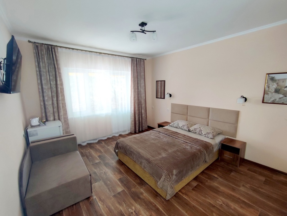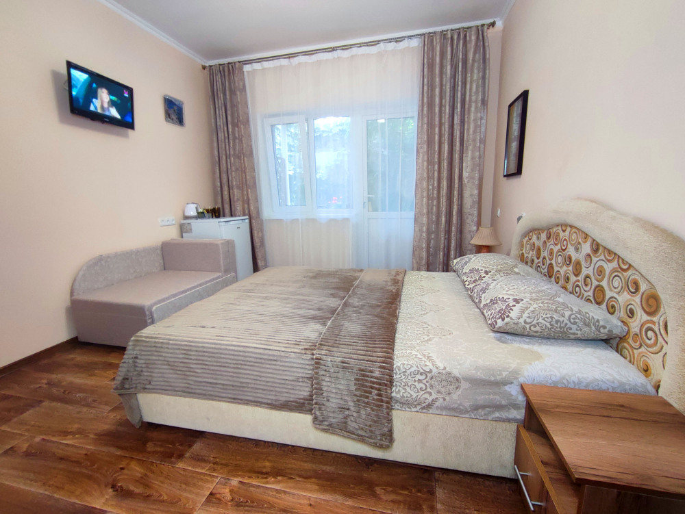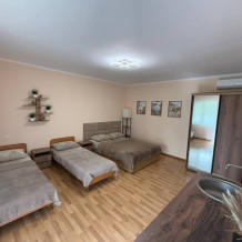 Всего 7 номеров в доме, а значит спокойный отдых при минимуме соседей. Номера 2-х, 3-х, 4-х местные. В номере душ, туалет, телевизор, холодильник, кондиционер, электрочайник, WiFi.