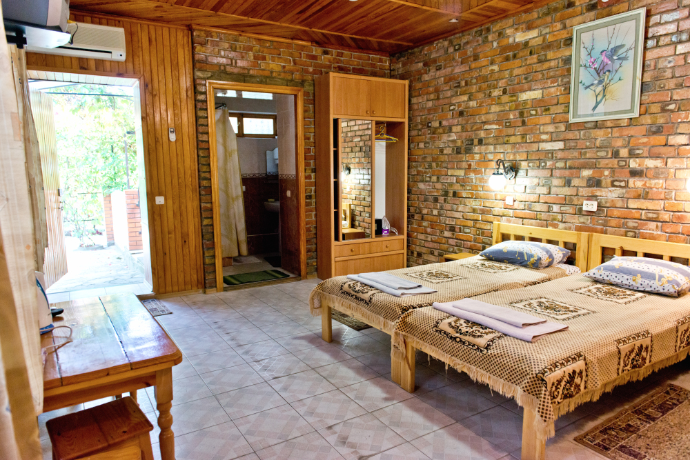 Безусловным преимуществом гостевого дома является то, что каждый номер имеет свою индивидуальную беседку, увитую виноградом, где можно приготовить шашлык или барбекю.