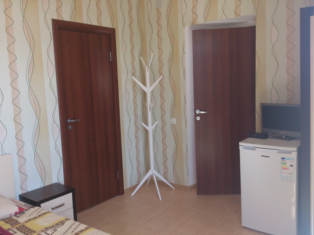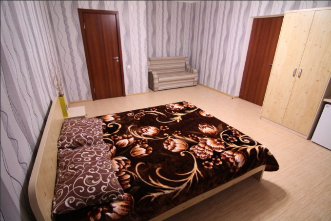 Предоставляем в аренду комфортабельные номера, вместимостью от 2-х до 5-ти человек, с новым современным ремонтом. В номерах все удобства (индивидуальный санузел, постоянно горячая и холодная вода). В каждом номере есть кондиционер, холодильник и телевизор. Wi-Fi. Выход на террасу. На территории есть кухня, беседки, скамейки и мангал. Есть возможность заказать питание. Детская площадка оборудована спортивным инвентарем для детей разного возраста. Есть батут.