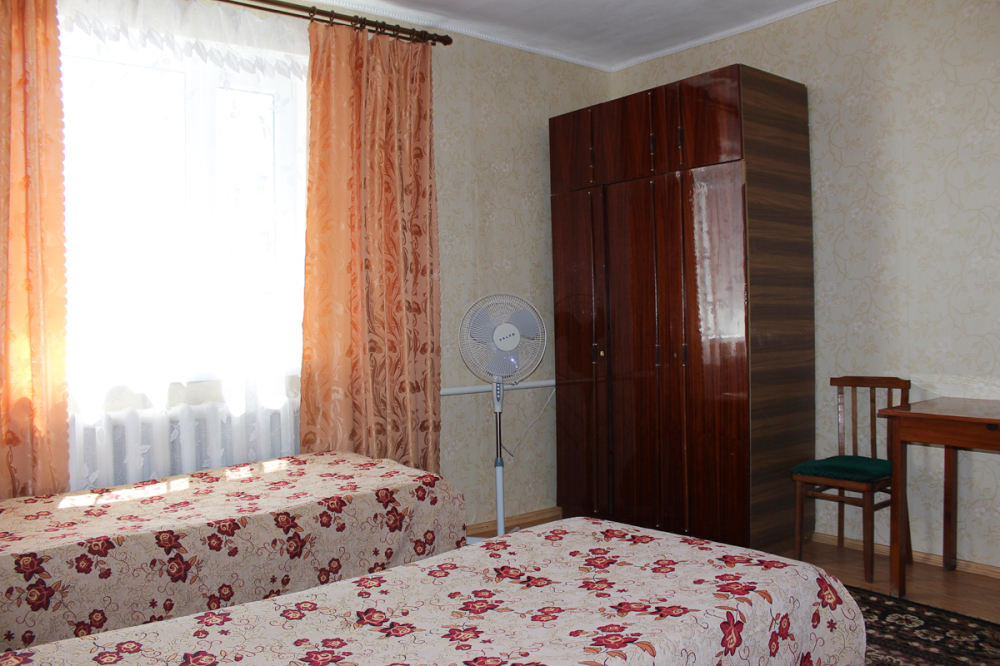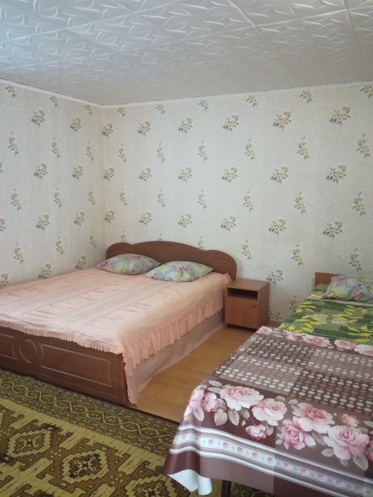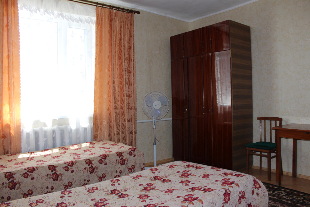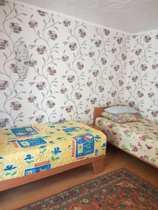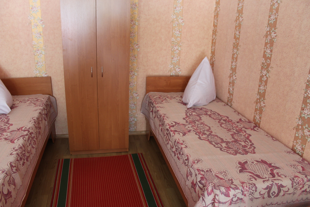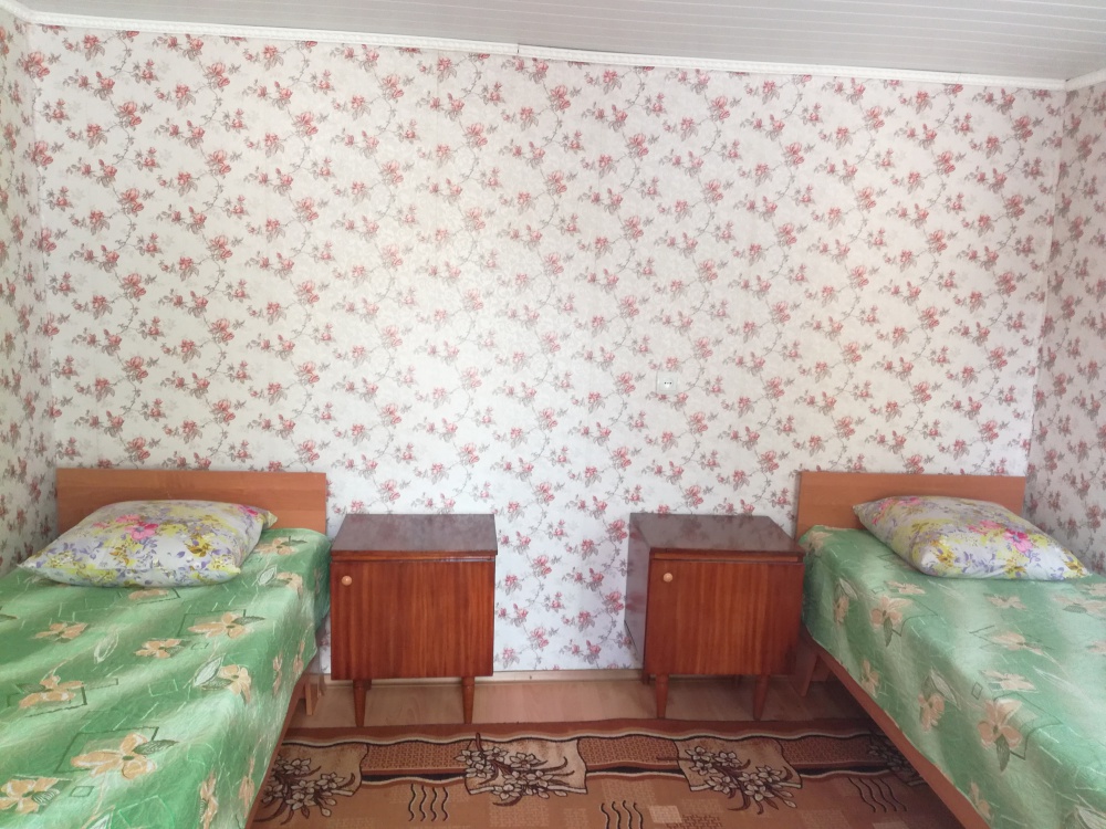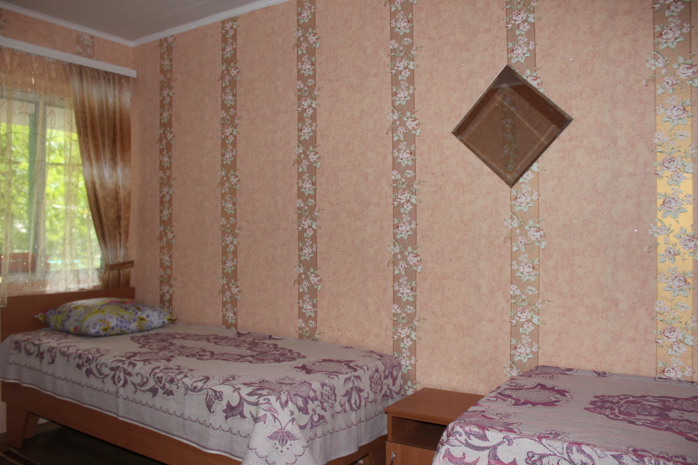 Двухместный номер 2 варианта: 1 двухспальная кровать или 2 односпальные кровати. Санузел и душевые общие- во дворе.