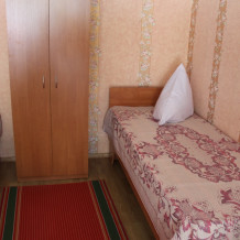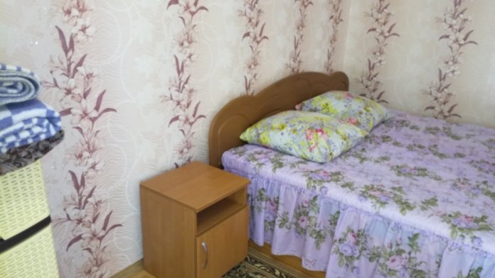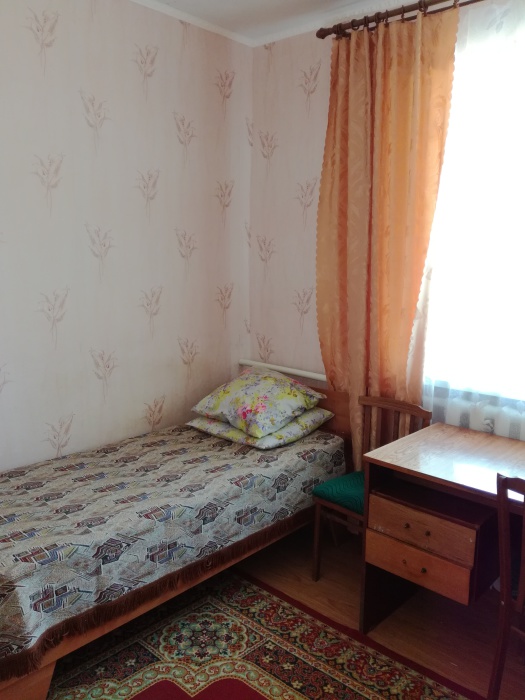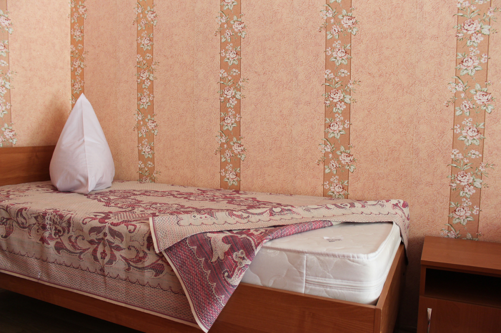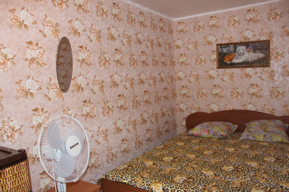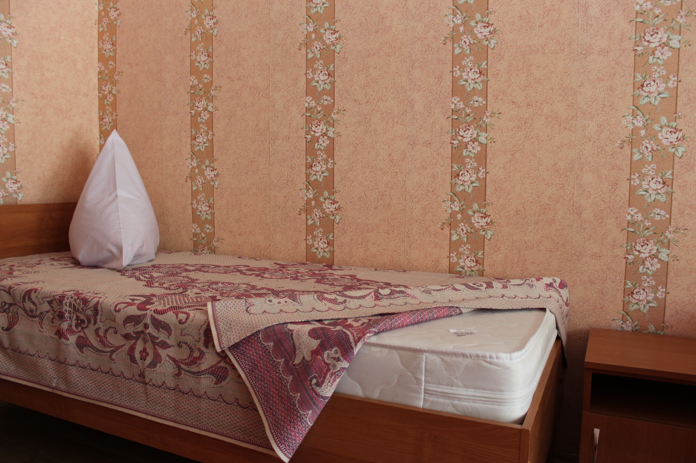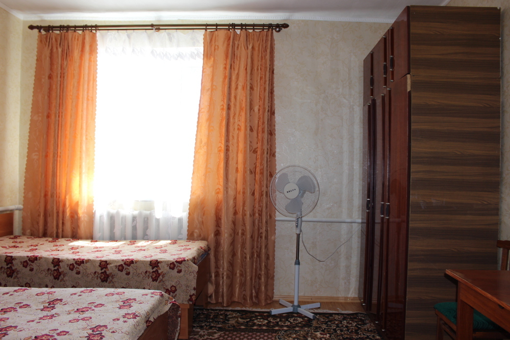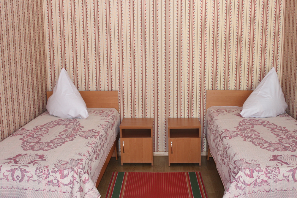 Двухместный номер 2 варианта: 1 двухспальная кровать или 2 односпальные кровати. Санузел и душевые общие- во дворе.