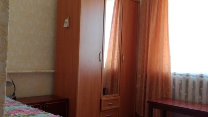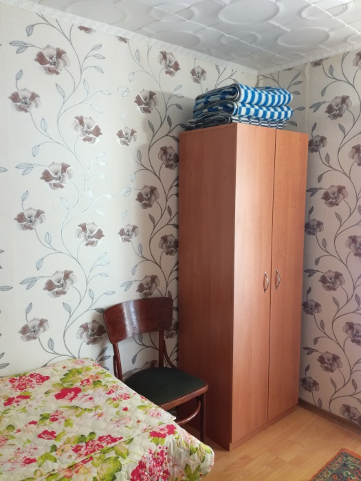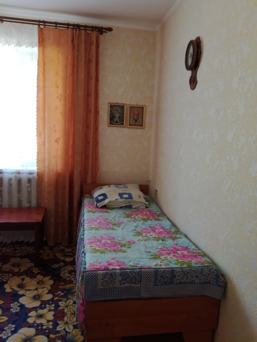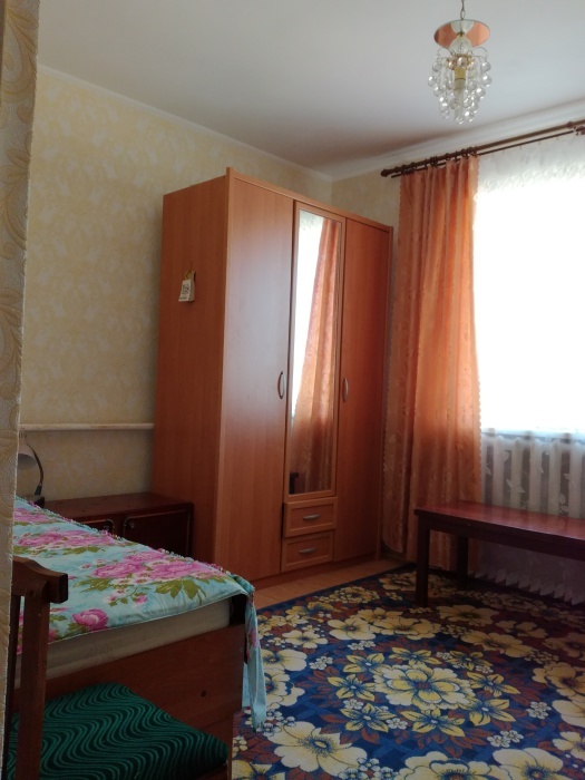 Трехместные номера два варианта . Вариант №1: односпальные кровати 3 шт. Вариант №2: 1 двухспальная кровать и 1 односпальная. Санузел и душевые общие - во дворе.