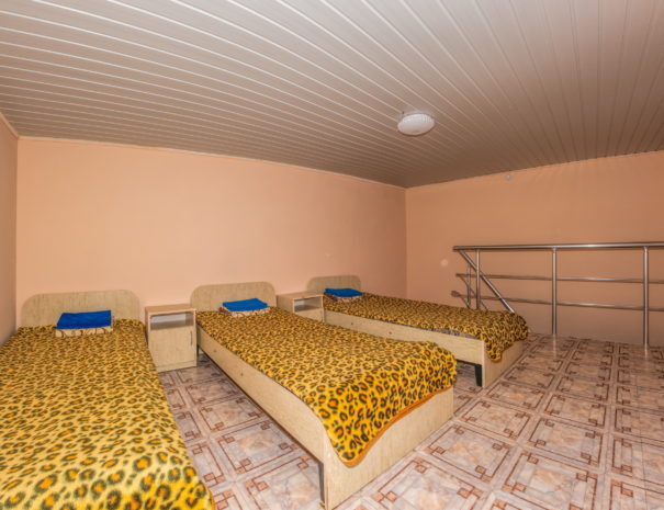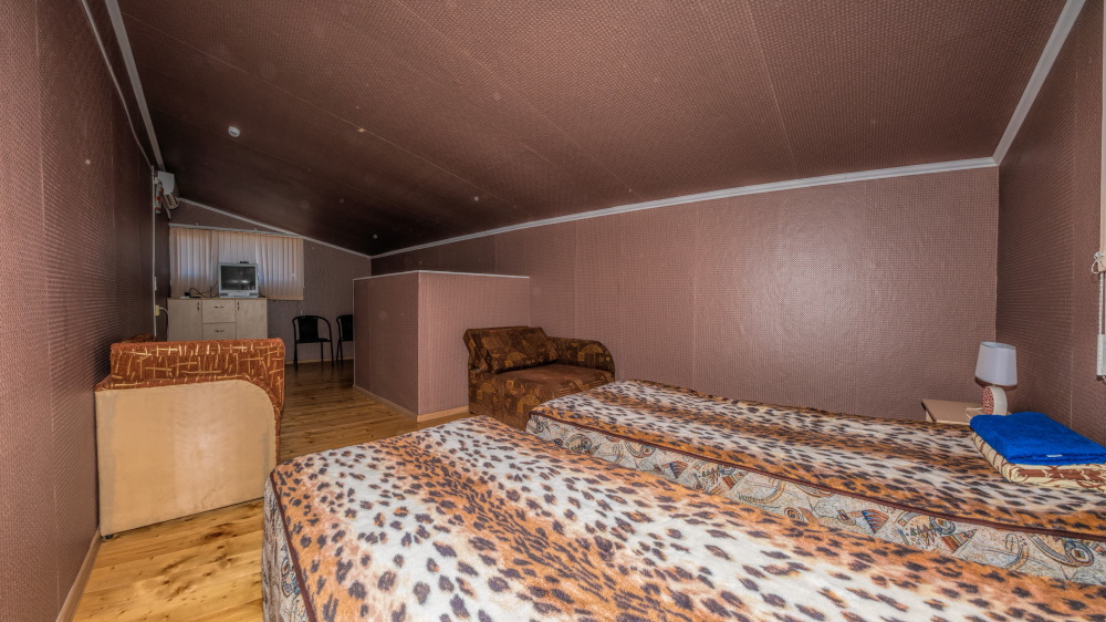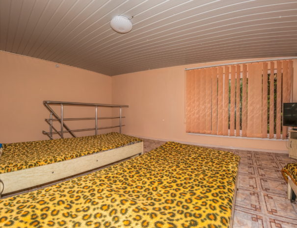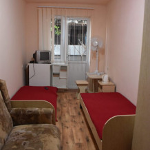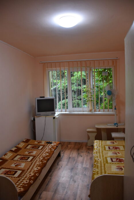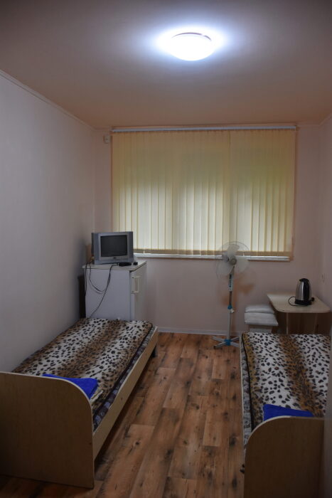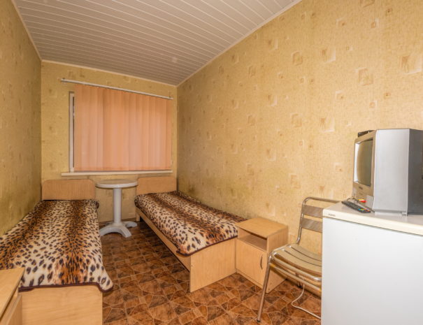 В каждом номере вентилятор, цифровое ТВ, Wi-Fi, две односпальные кровати, прикроватные тумбочки, платяной шкаф, электрический чайник, холодильник, необходимый набор посуды, обеденный стол и стулья. Санузел (душ и туалет) у данной категории номеров общий на четыре номера. Также к Вашим услугам общая кухня на четыре номера с кухонной мебелью, электрическими плитами и кухонными принадлежностями. При заселении конфигурация номера может незначительно отличаться (в зависимости от наличия свободного номера).