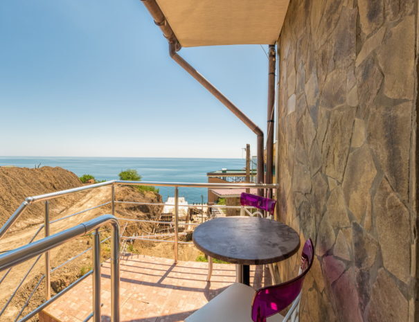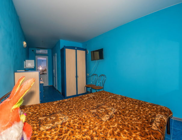 В каждом номере спальная комната, совмещенная с обеденной зоной, и санузел (душ и туалет). Спальная комната оснащена цифровым ТВ, Wi-Fi, кондиционером, двуспальной кроватью либо двуспальным диваном, диваном-малюткой, прикроватными тумбочками и стенкой для одежды. Обеденная зона – мультиваркой, микроволновой печью, электрическим чайником, холодильником, кухонной мебелью с необходимым набором посуды, обеденным столом и стульями. Из окон открывается прекрасный вид на море. При заселении конфигурация номера может незначительно отличаться (в зависимости от наличия свободного номера).
