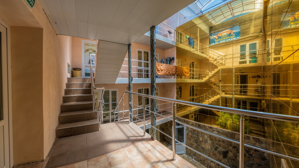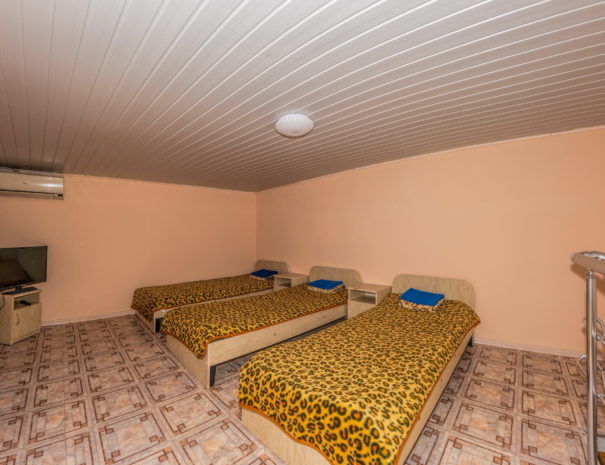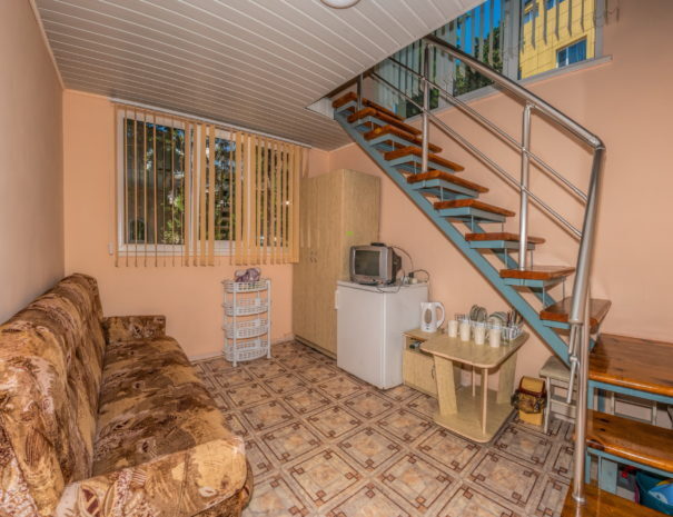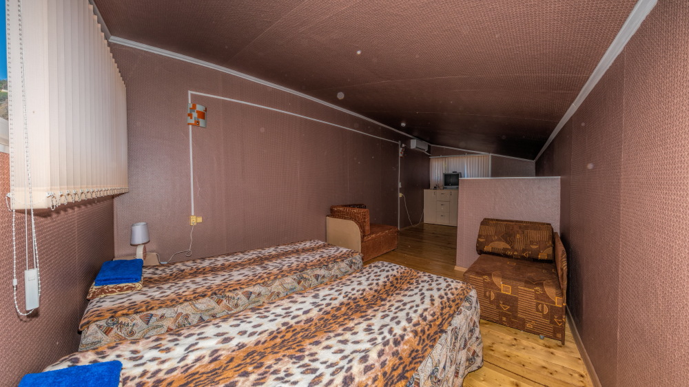 В каждом номере вентилятор, цифровое ТВ, Wi-Fi, две односпальные кровати и диван, платяной шкаф, электрический чайник, холодильник, необходимый набор посуды, столик и табуретки, а также личный балкон. Санузел (душ и туалет) у данной категории номеров общий на четыре номера. Также к Вашим услугам общая кухня на четыре номера с кухонной мебелью, электрическими плитами и кухонными принадлежностями. При заселении конфигурация номера может незначительно отличаться (в зависимости от наличия свободного номера).