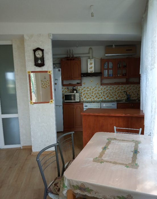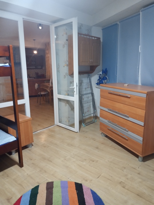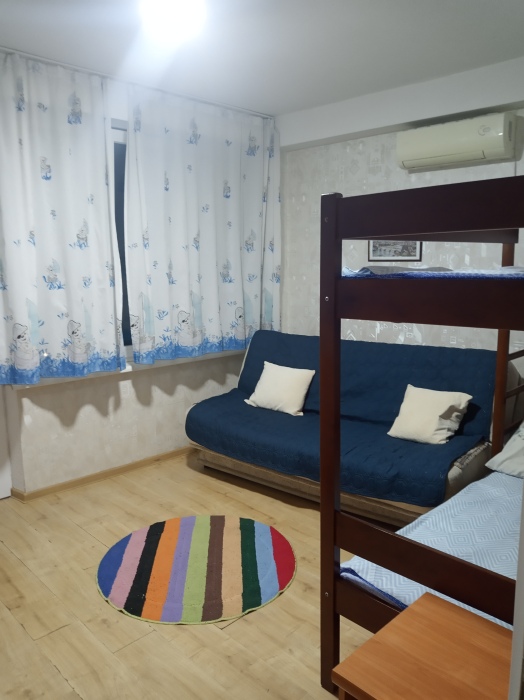 Две изолированные комнаты и одна проходная, совмещённая с кухней. 2 санузла, один из которых с душем, находится в изолированной спальне, а 2 в проходной комнате. В каждой комнате двуспальные спальные места (одна двуспальная кровать, два раскладных дивана и двухъярусная кровать для детей) - всего 8 мест. Есть возможность поставить раскладушку.
