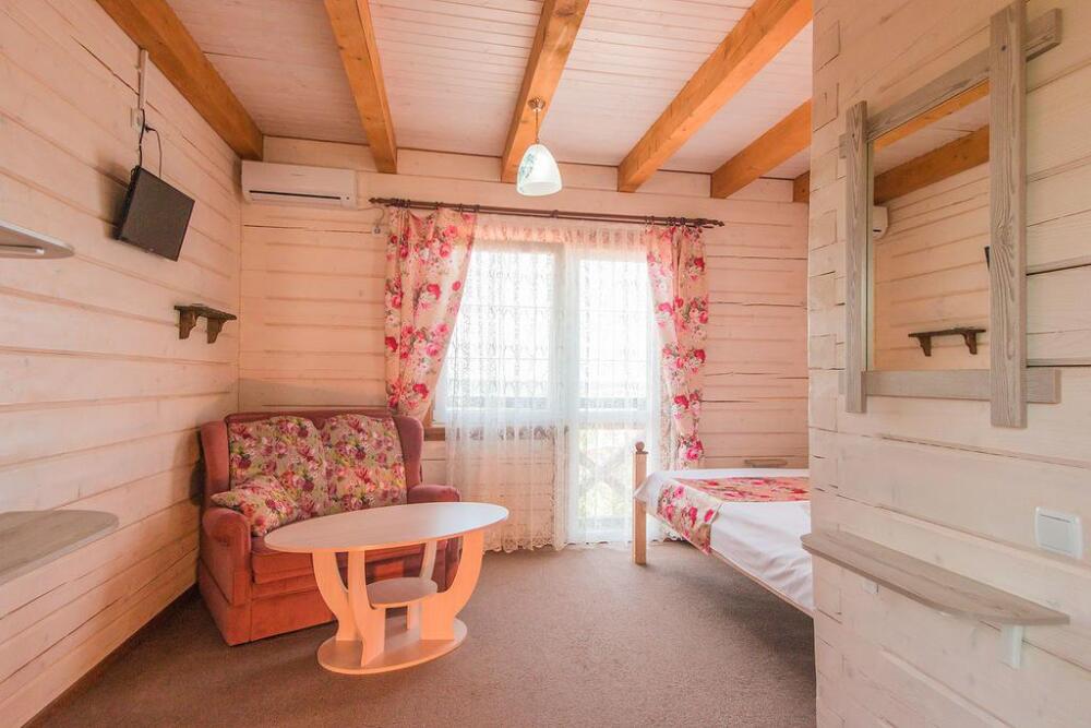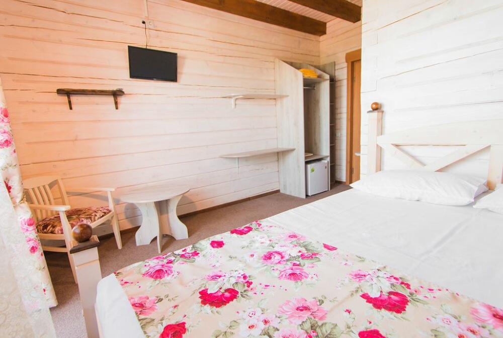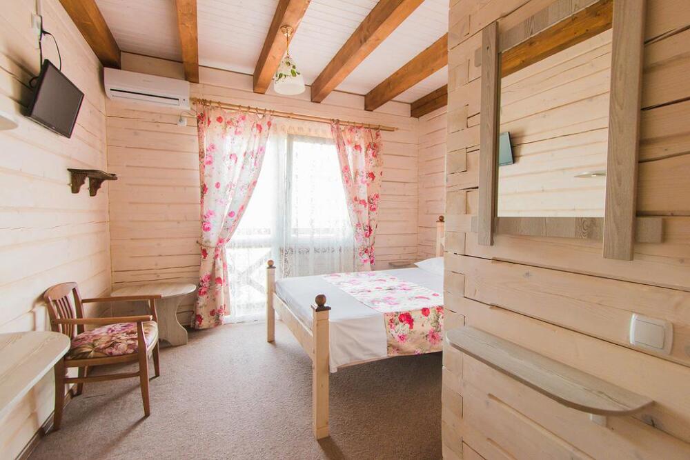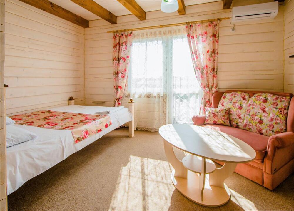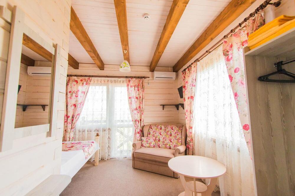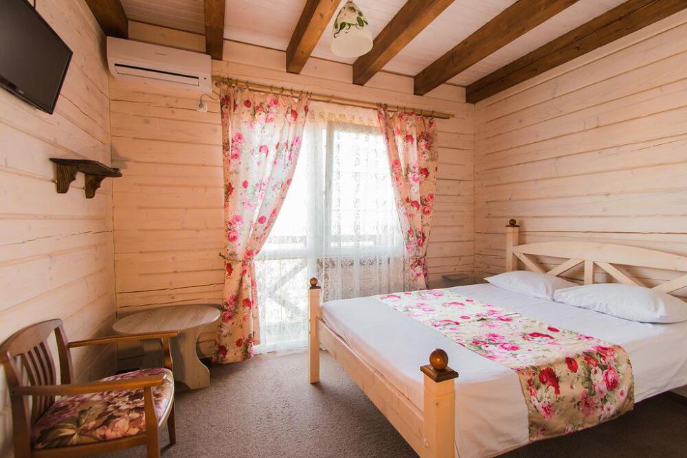 Гостевой дом построен в 2016 году из экологически чистого леса, привезенного из Западной Украины. При строительстве использовались только экологически чистые материалы. Снаружи все выполнено в «баварском» стиле, а внутреннее убранство оформлено в стиле «прованс».