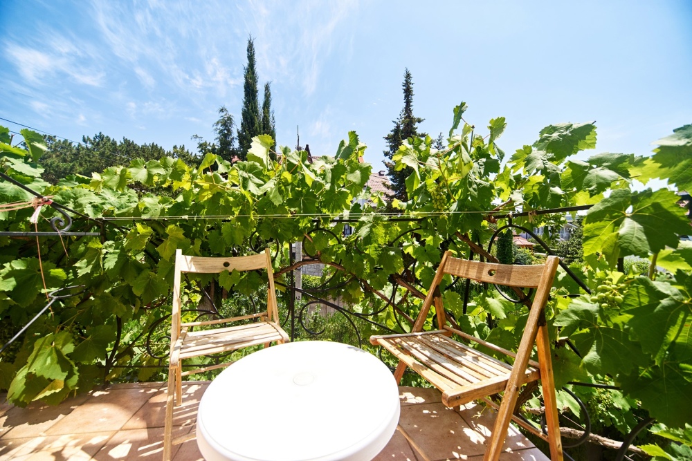 Есть комнаты с отдельным двориком. Рядом два замечательных пляжа - галечный и песочный.