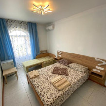 Комфортабельный номер на первой линии пляжа Учкуевка. Уборка в номерах раз в 7 дней. На этаже есть электрочайник для общего пользования.