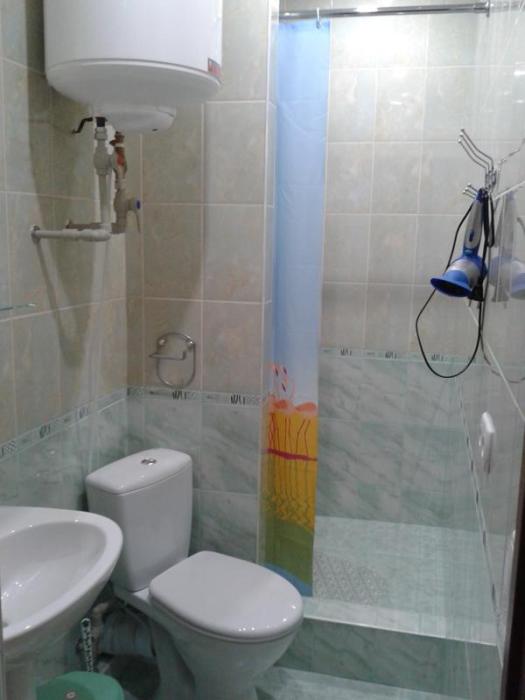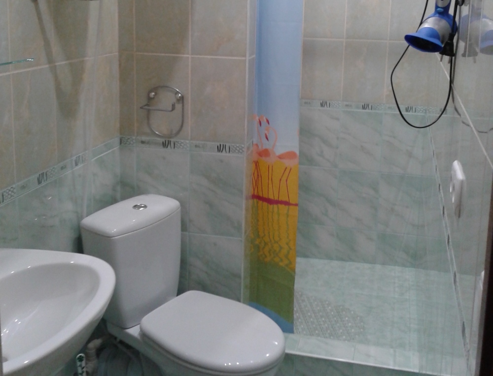 В квартире 3 комнаты, одна двуспальная кровать и 2 односпальные (или две двуспальные кровати или 4 односпальные), диван-кровать, шкаф, туалетный столик, прикроватные тумбочки, стол, стулья, кухонный гарнитур, посуда, 2 балкона, интернет, TV, фен, кондиционеры в каждой комнате, в санузле душевая кабинка + джакузи.