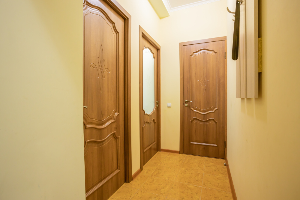 В комнате раскладной диван, шкафы, прикроватная тумбочка, стол, стулья, холодильник, фен, чайник, посуда, TV, интернет, кондиционер.